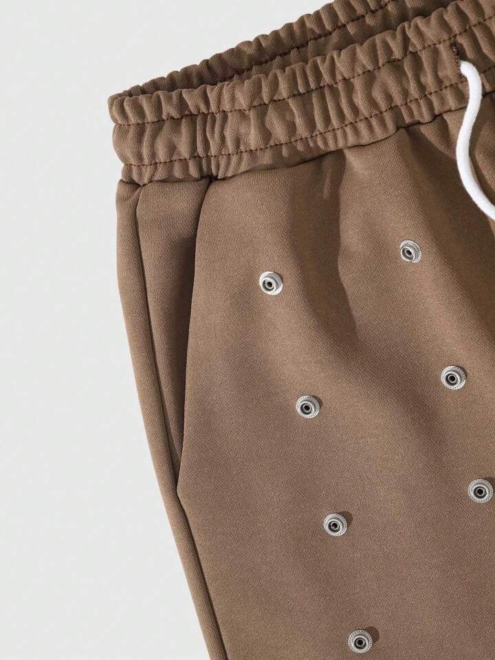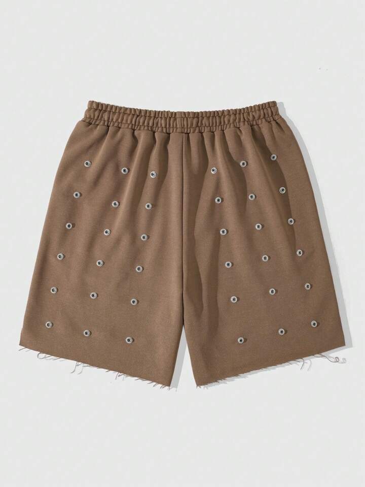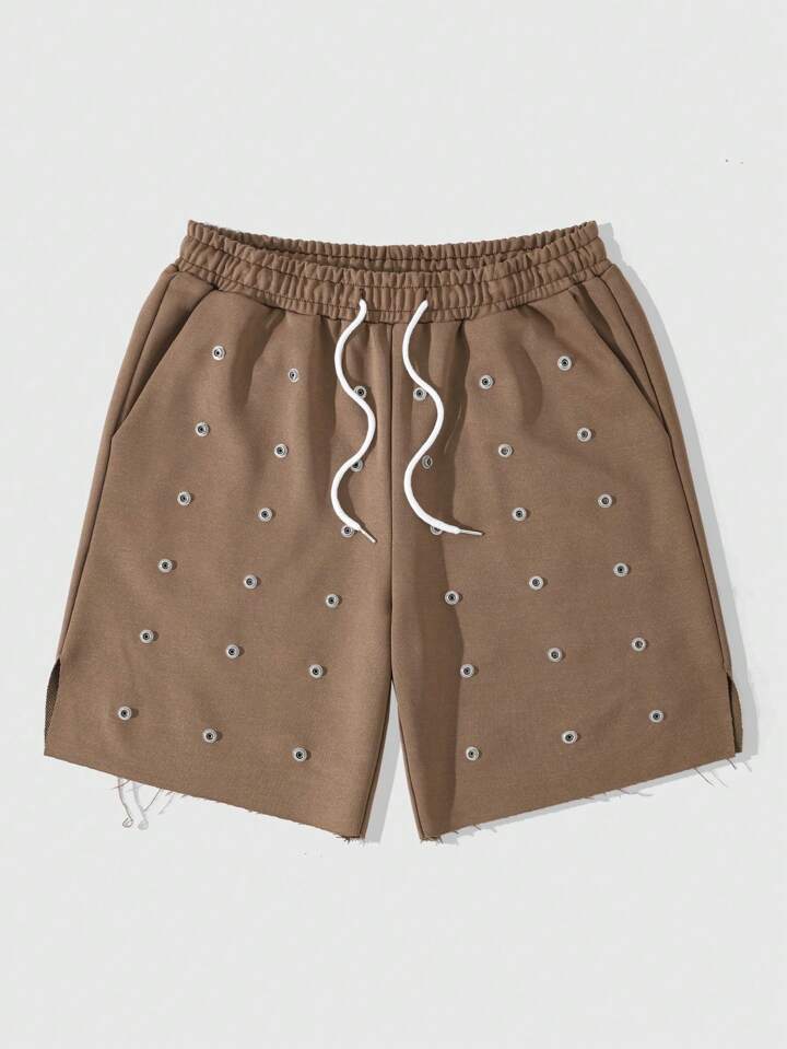 Grunge Punk Pantaloncini larghi da uomo con vita a cordoncino e borchie di metallo