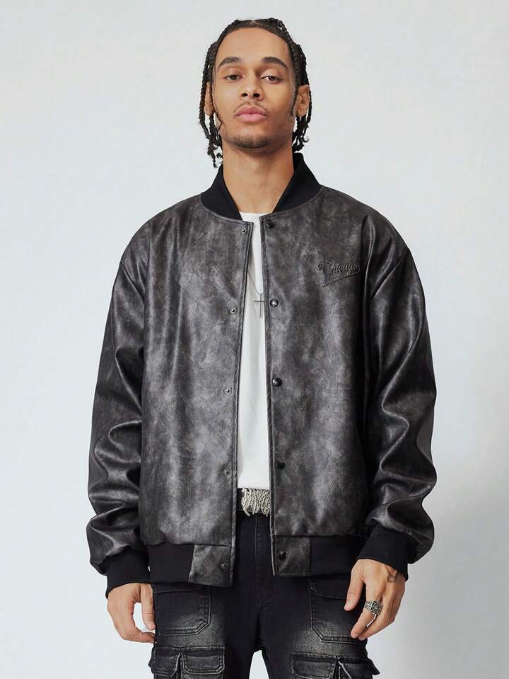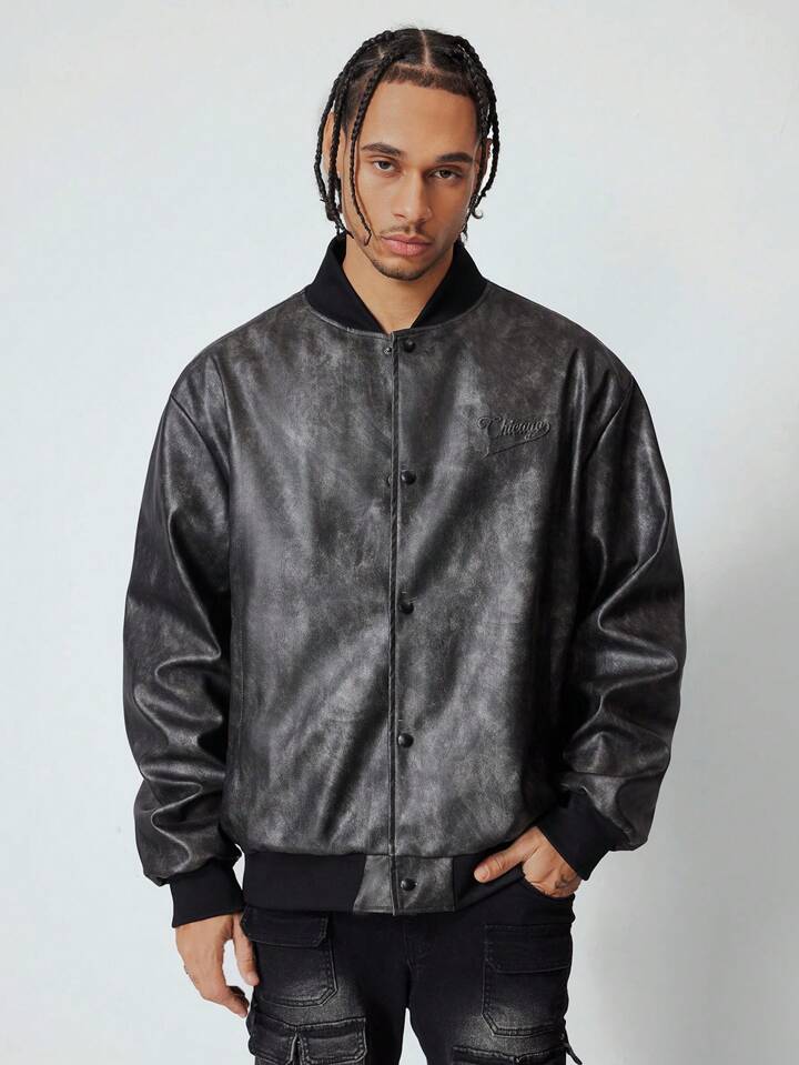 Grunge Punk Giacca da uomo da aviatore retrò con lettera in rilievo