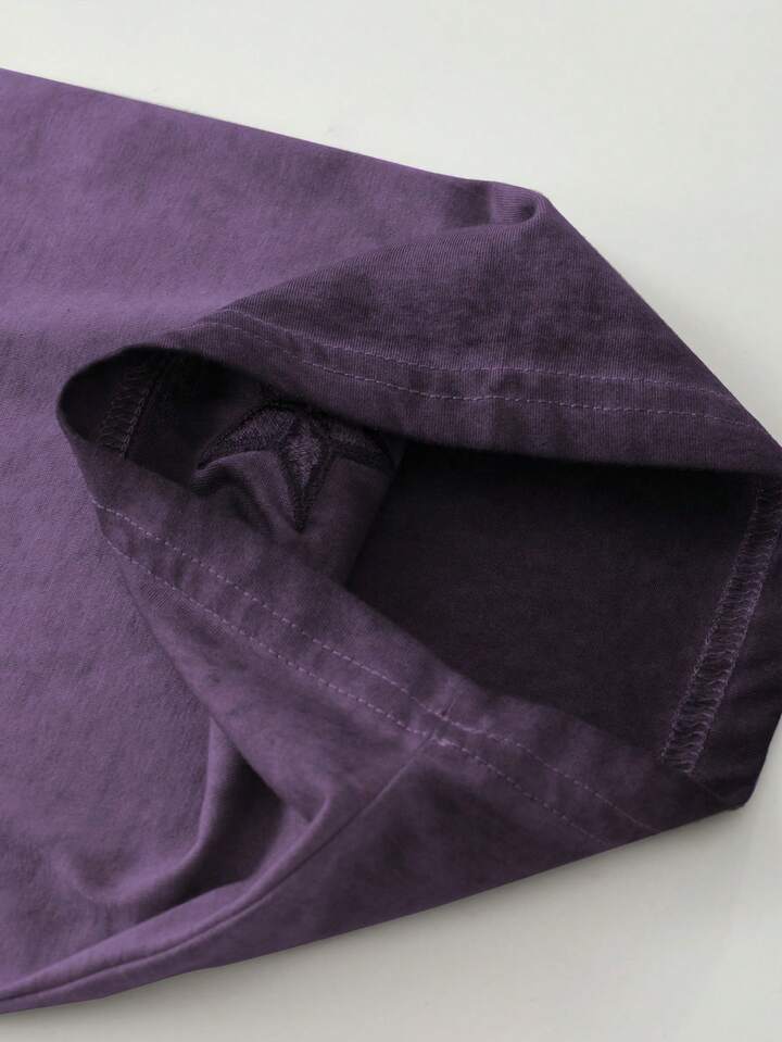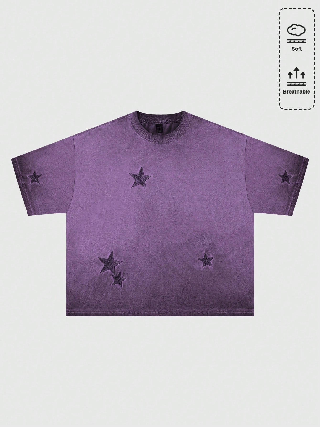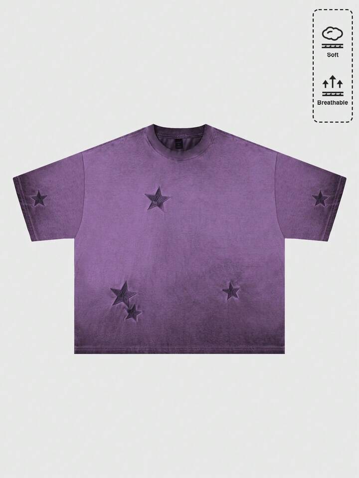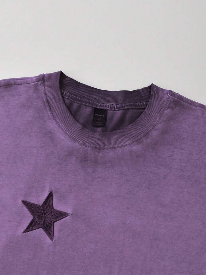 Grunge Punk maglietta ampia da uomo con ricamo a stelle e collo rotondo, lavata