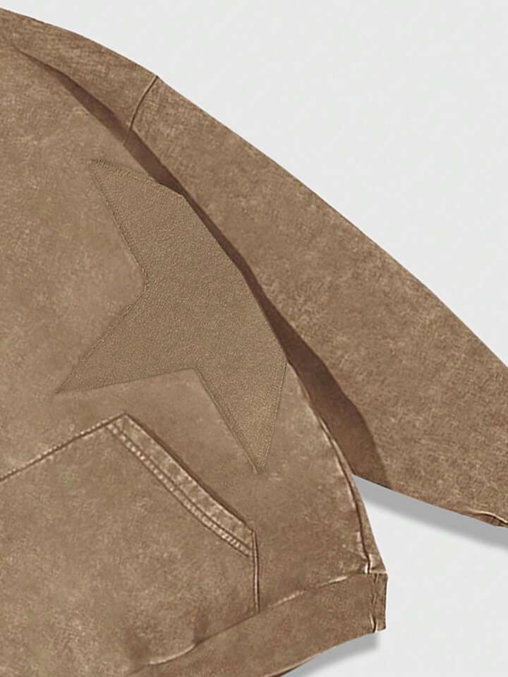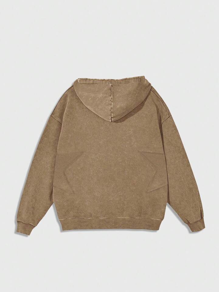 Grunge Punk Hoodie da uomo con stampa a stella, a quadri e tasche lunghe