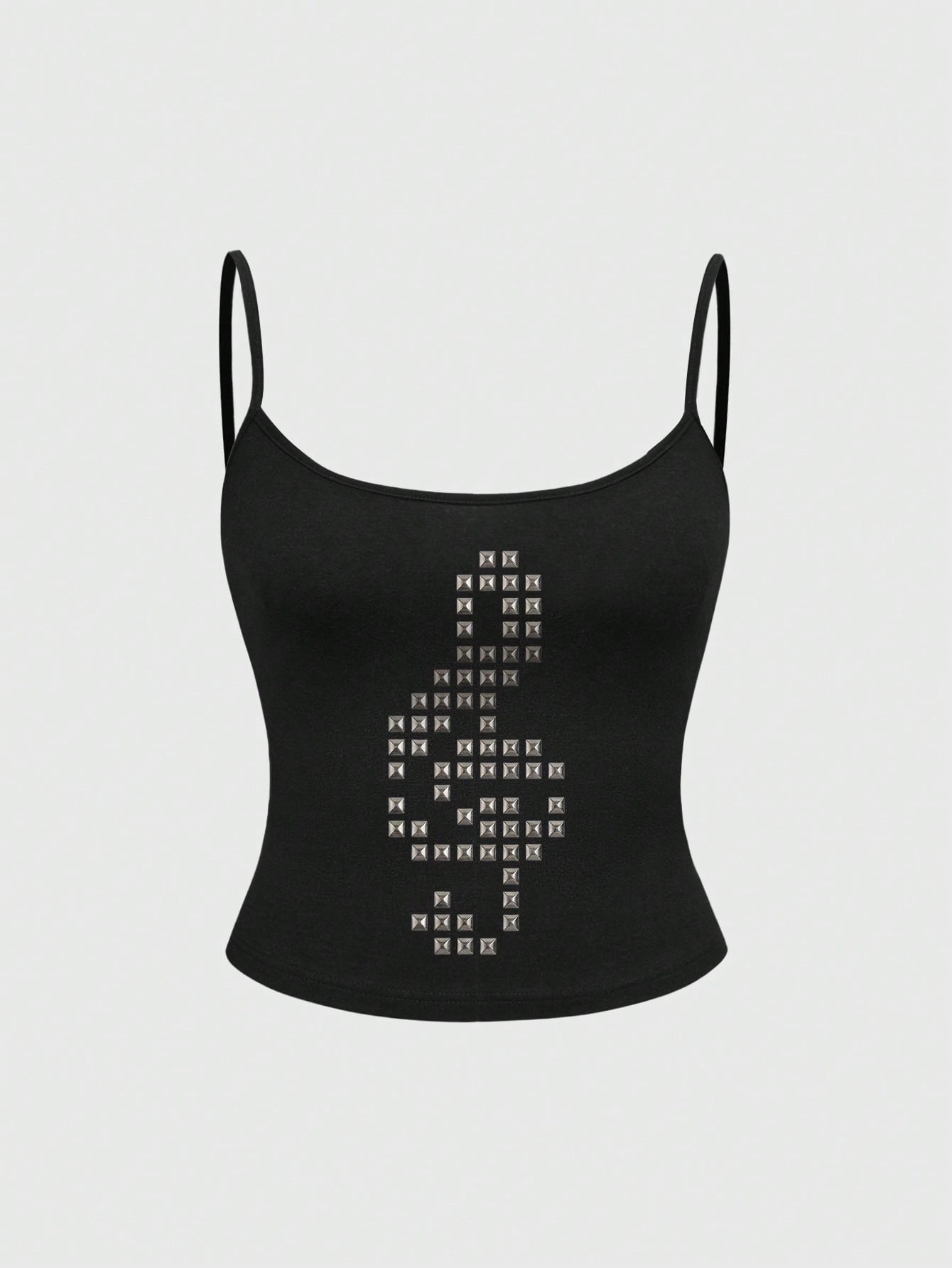 Grunge Punk Canotta da donna stile punk rock con note musicali e borchie