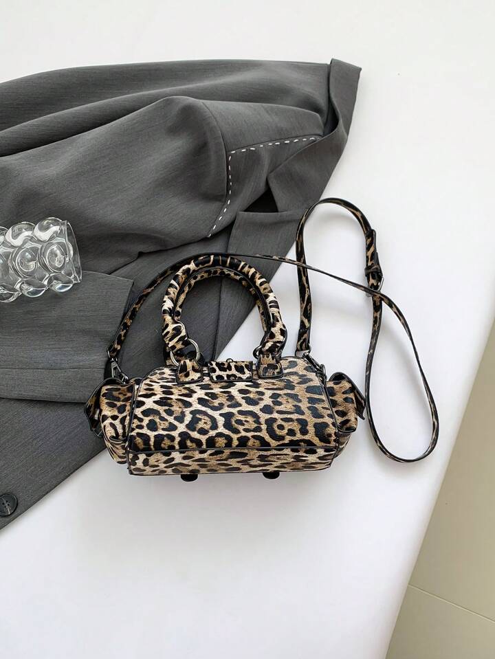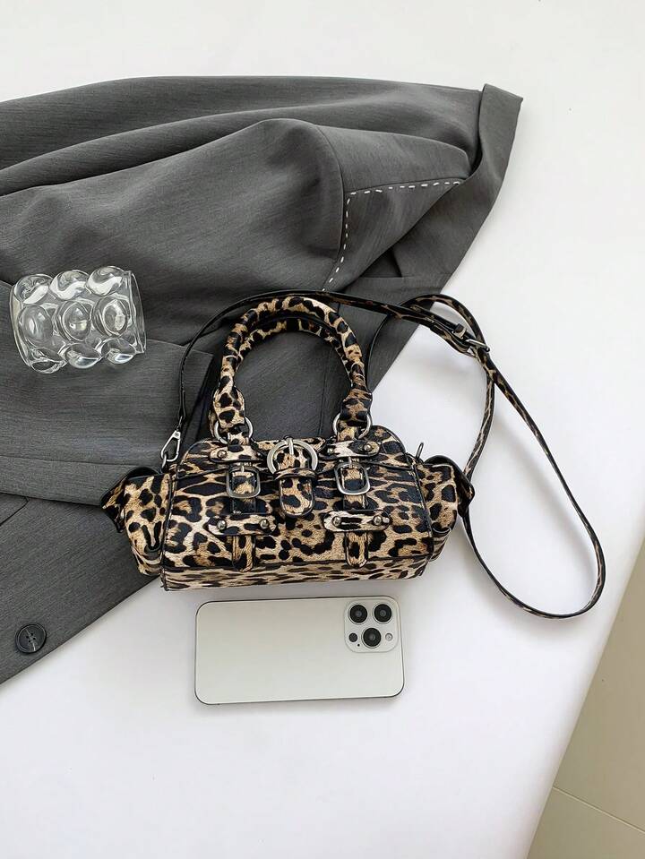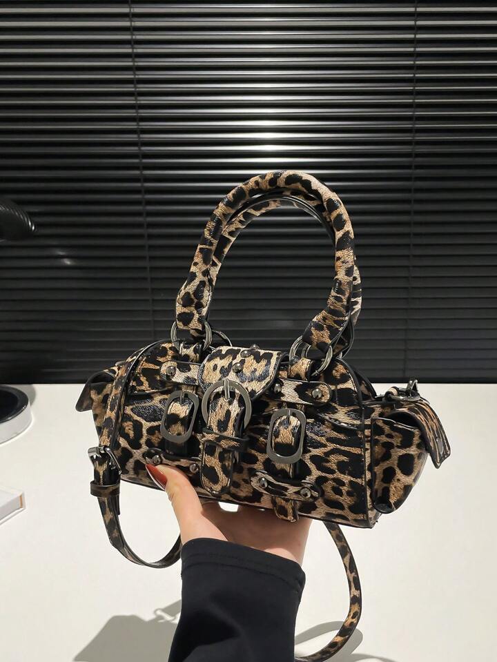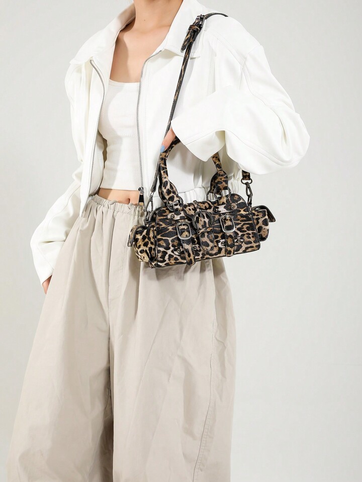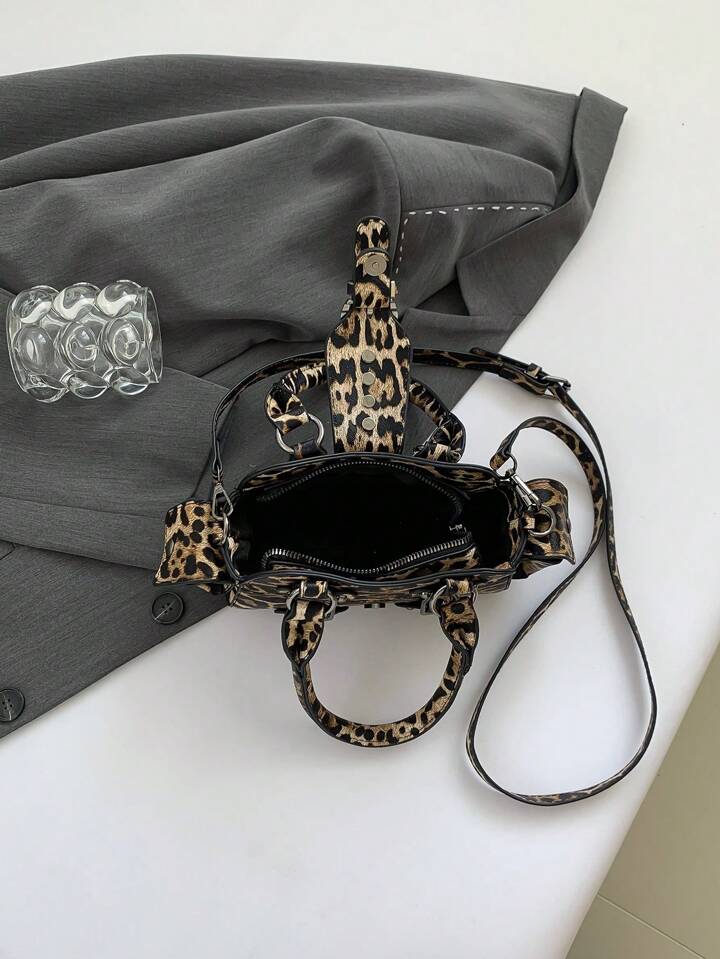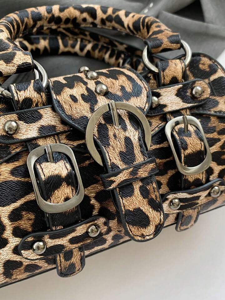 Grunge Punk Nuova borsa a spalla casual da donna di moda con stampa leopardata, borsa a tracolla punk con borchie, cartella casual