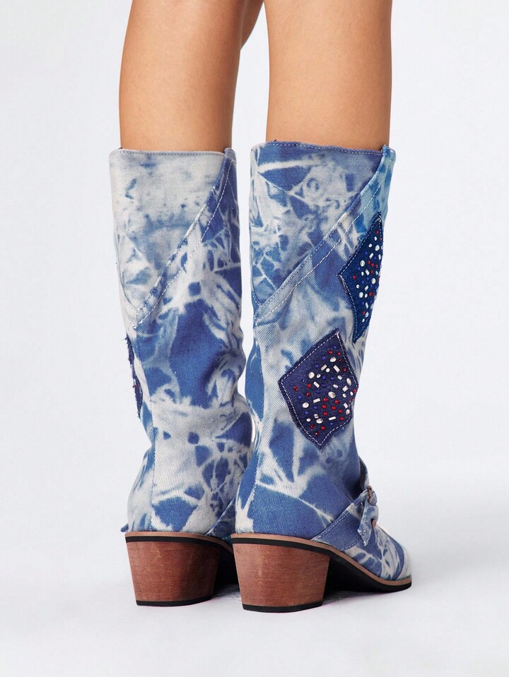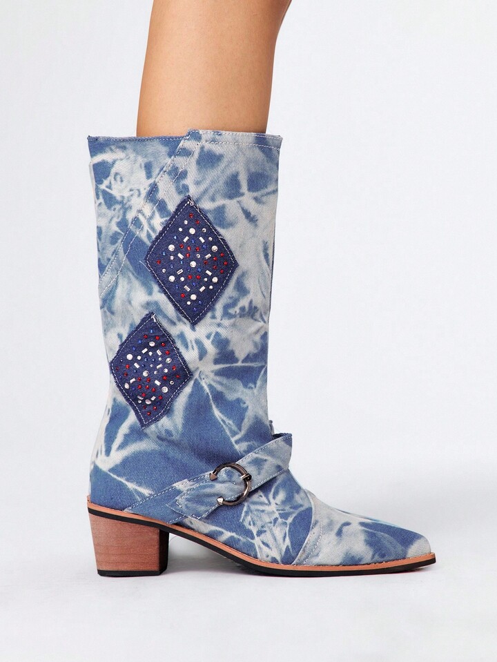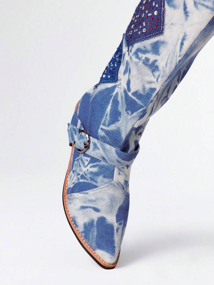 Grunge Punk Nuovi stivali alla caviglia con punta a punta, tacco largo e strass, stivali di moda