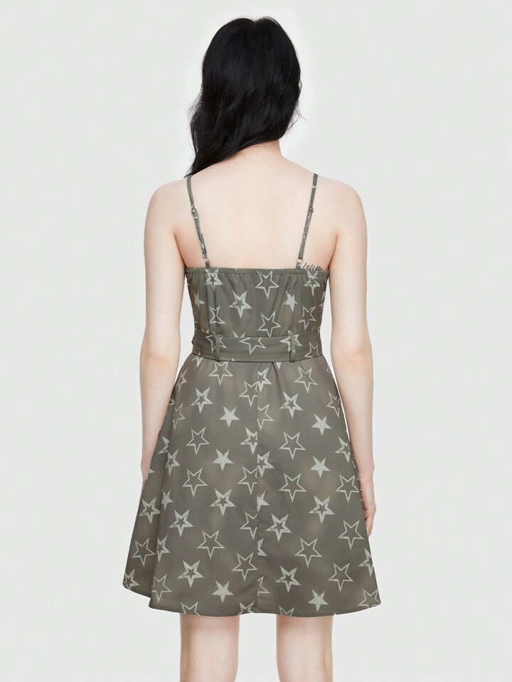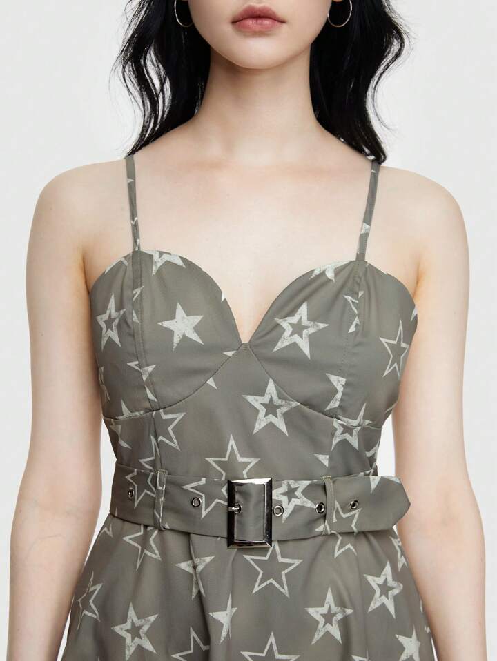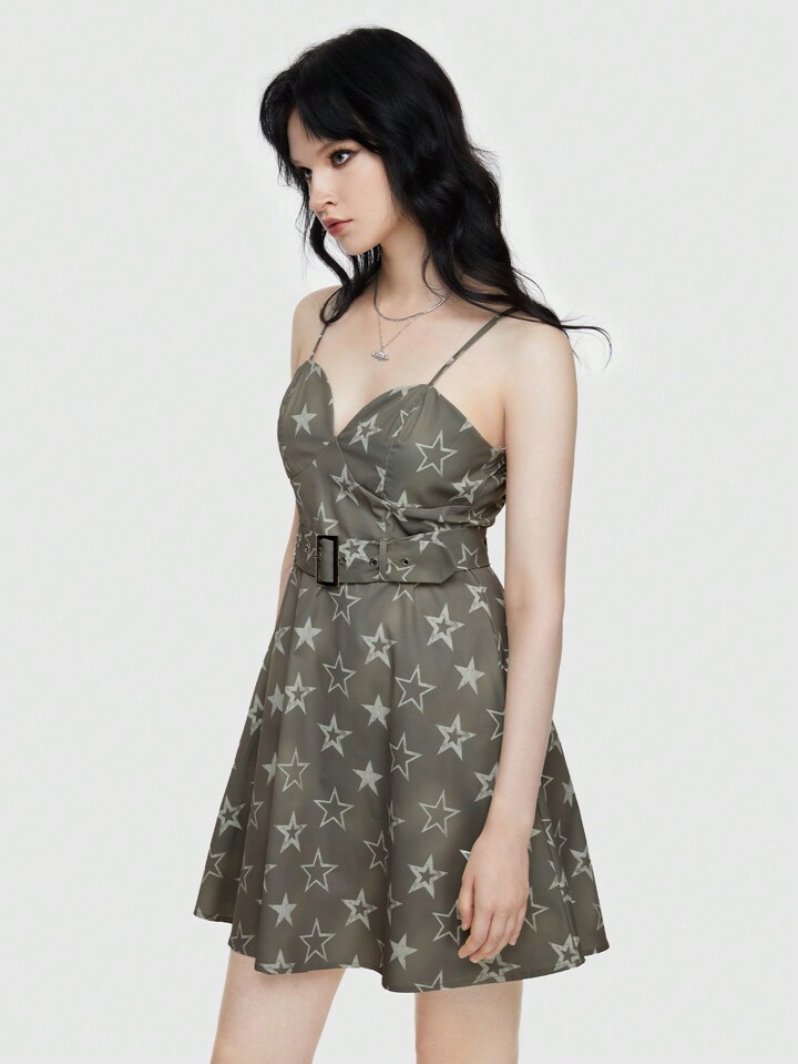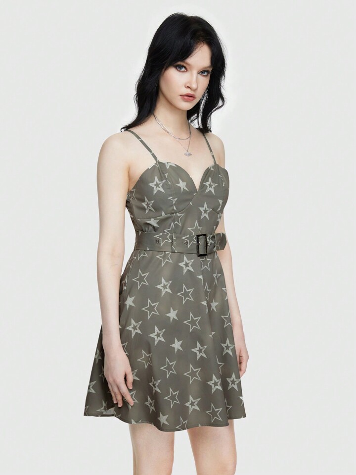 Grunge Punk Abito Cami Con Design A Cintura Con Stampa Di Stelle In Stile Outdoor