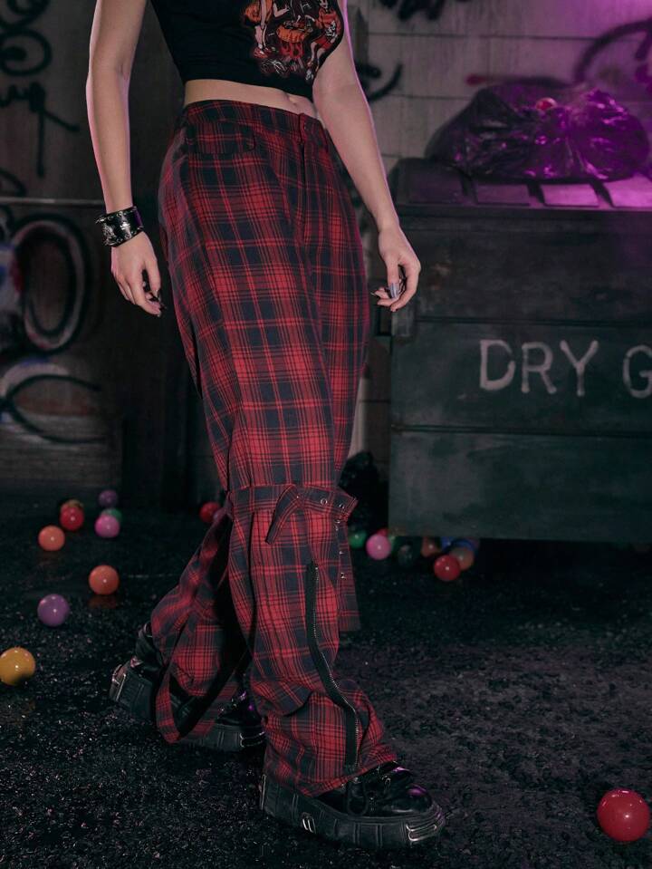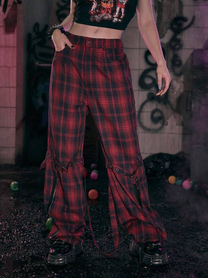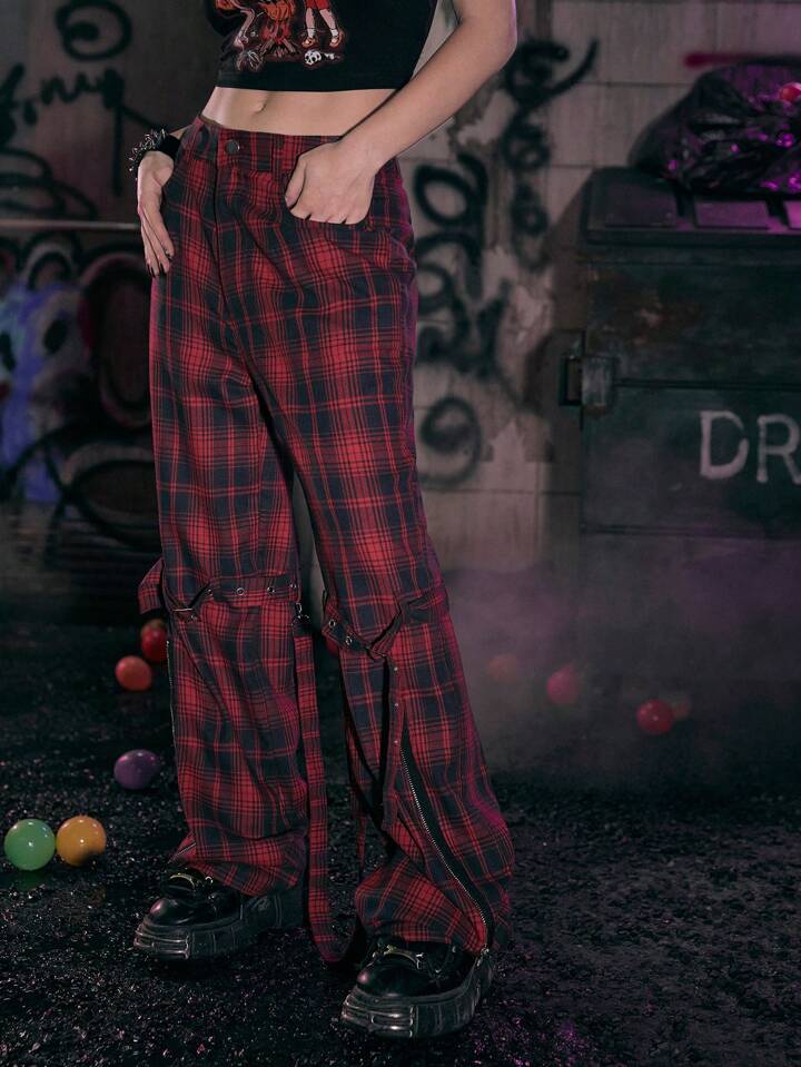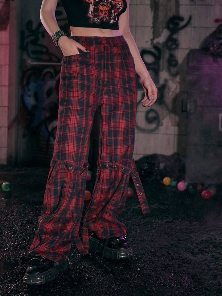 Grunge Punk Pantaloni con stampa quadri dettaglio fibbia