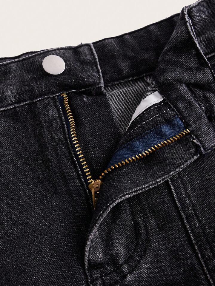 Grunge Punk Gonna di jeans con orlo grezzo plissettato, scolastica