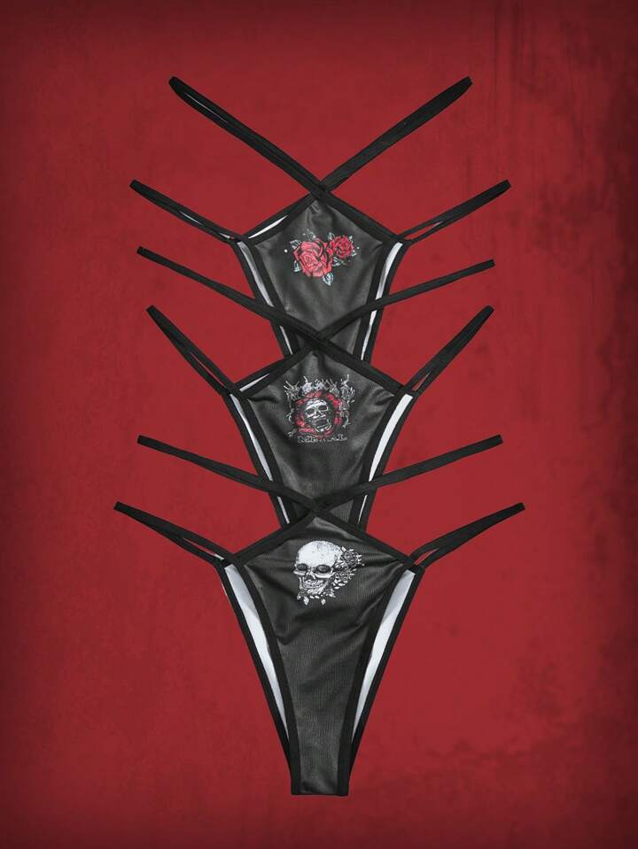 Grunge Punk Taglie Forti 3 pacchi con stampa teschi Mutandine Sets