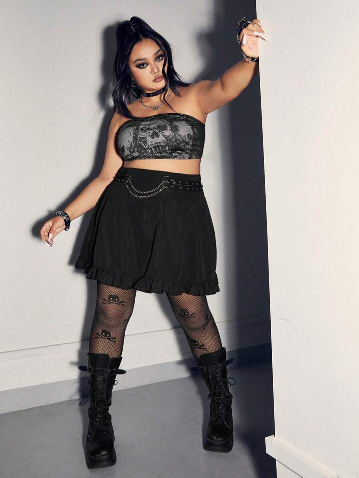 Grunge Punk Taglie Forti Gonne dettaglio catena con volant