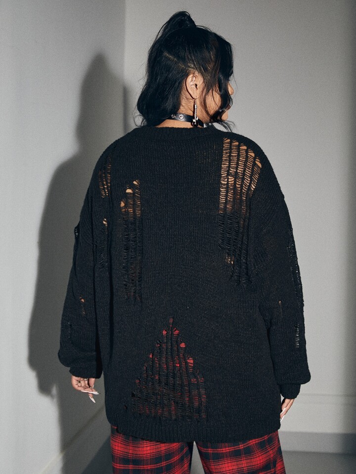Grunge Punk taglie forti Maglione slavato spalle cadenti