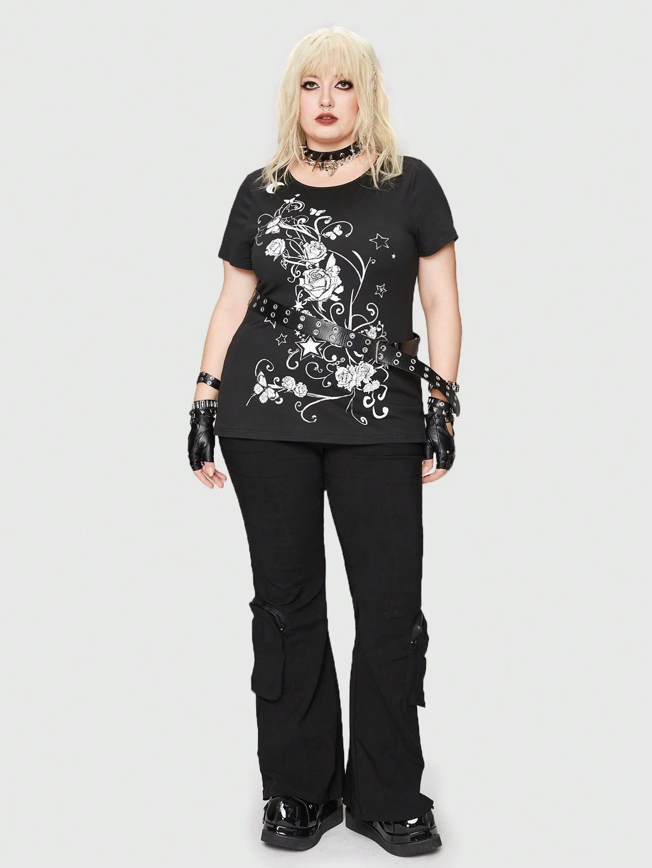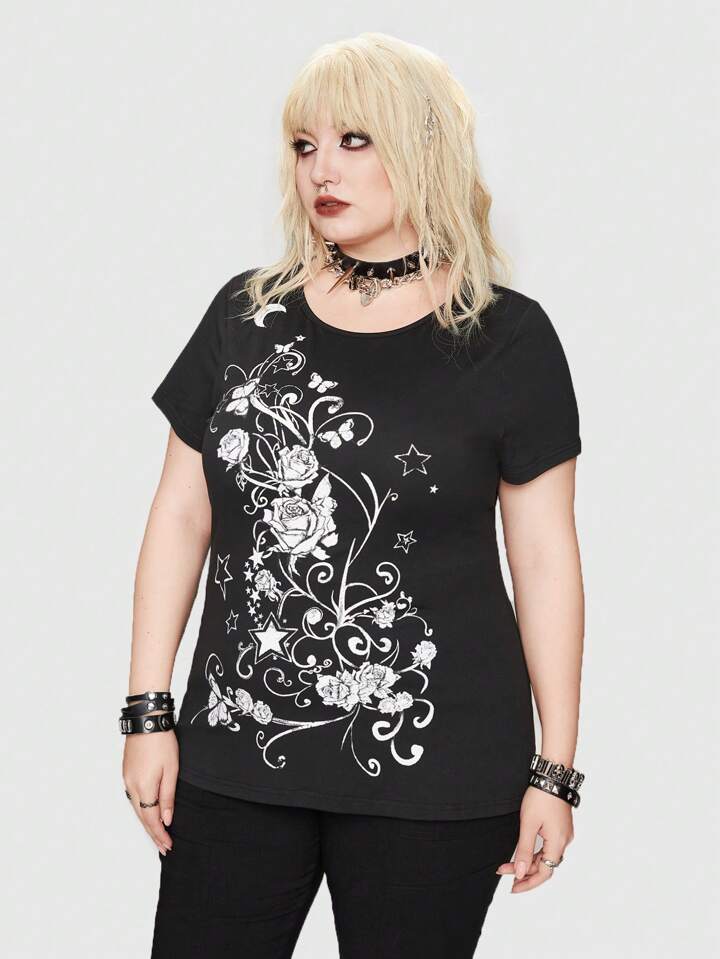 Grunge Punk Taglie Forti Maglietta con grafica floreale