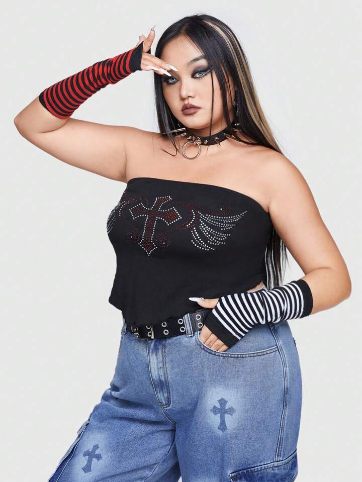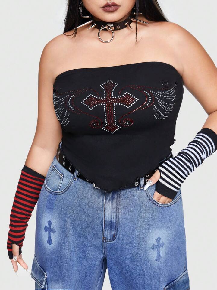 Grunge Punk Taglie Forti Top tubo con strass con stampa croce