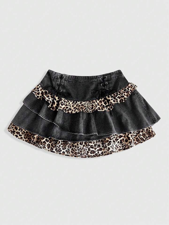 Grunge Punk Gonna di jeans leopardata stile Kpop Grunge-Punk di taglia grande, gonna di jeans mini versatile lavata vintage, gonna di jeans punk rock di taglia grande stile Kpop per autunno/inverno