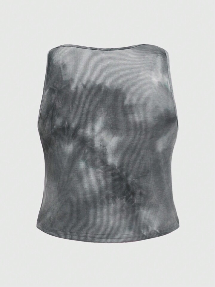 Grunge Punk Top a canottiera a costine con stampa grafica di occhi e mani, legata, per taglie grandi, per la scuola