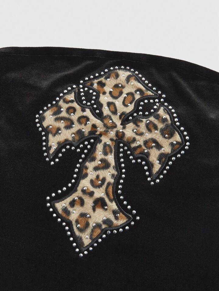 Grunge Punk Top corto in velluto taglie forti con stampa leopardata, patchwork e strass a forma di croce