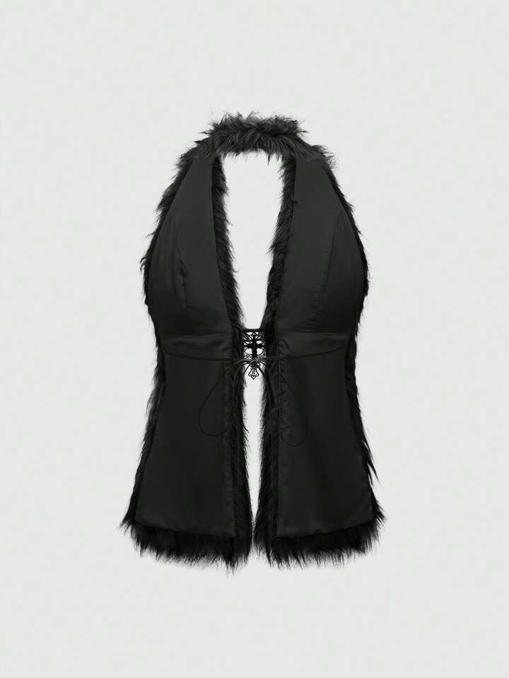 Grunge Punk Canotte da donna taglie forti con lacci e schiena scoperta, di colore unito