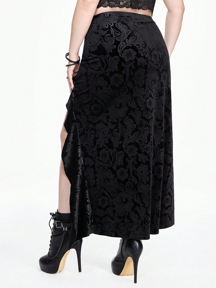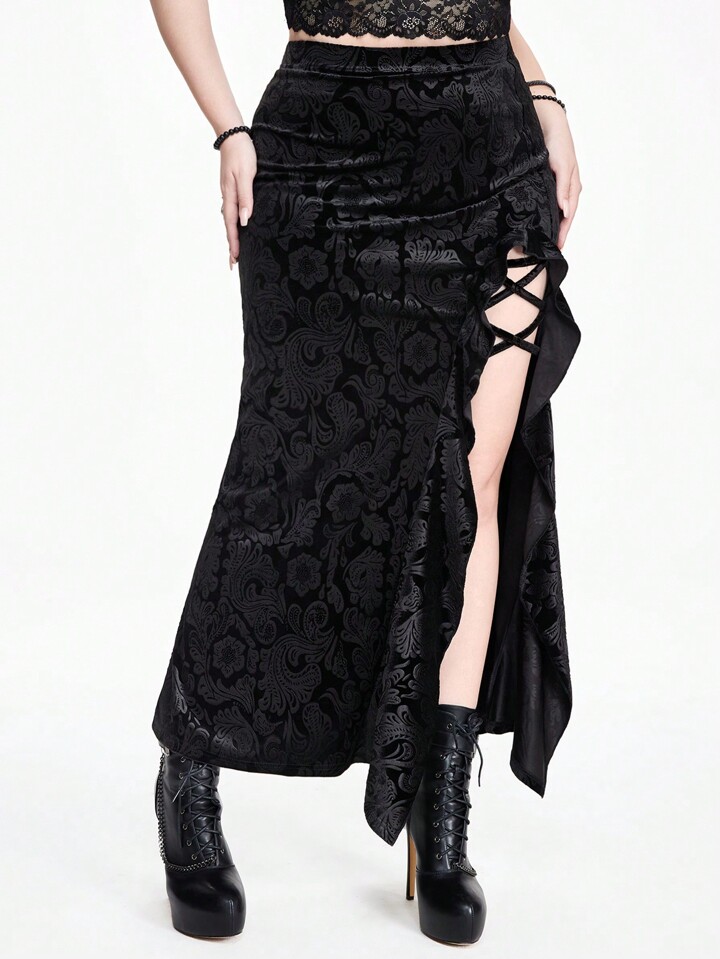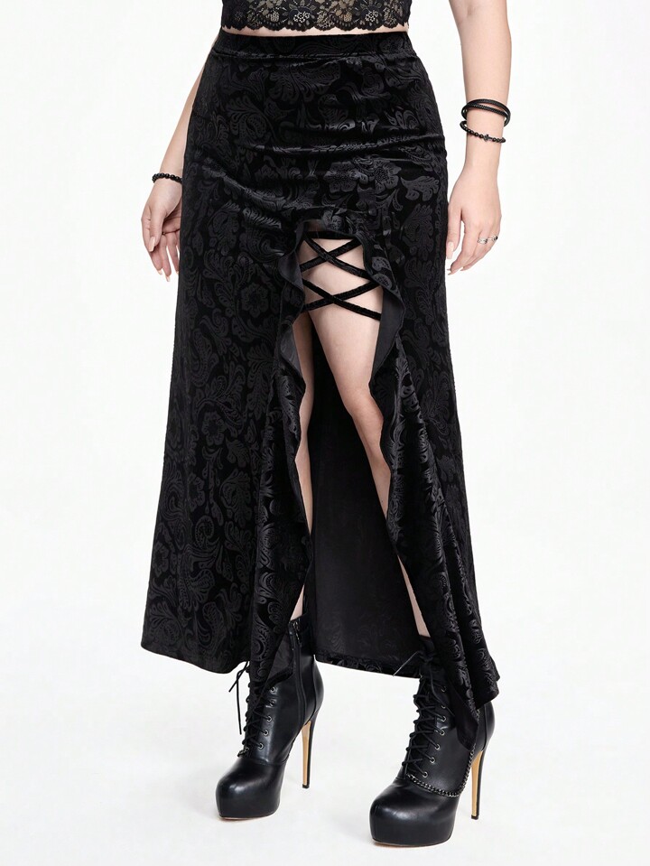 Grunge Punk Gonna a-line con orlo spaccato e laccio incrociato in tinta unita, taglie comode per donne