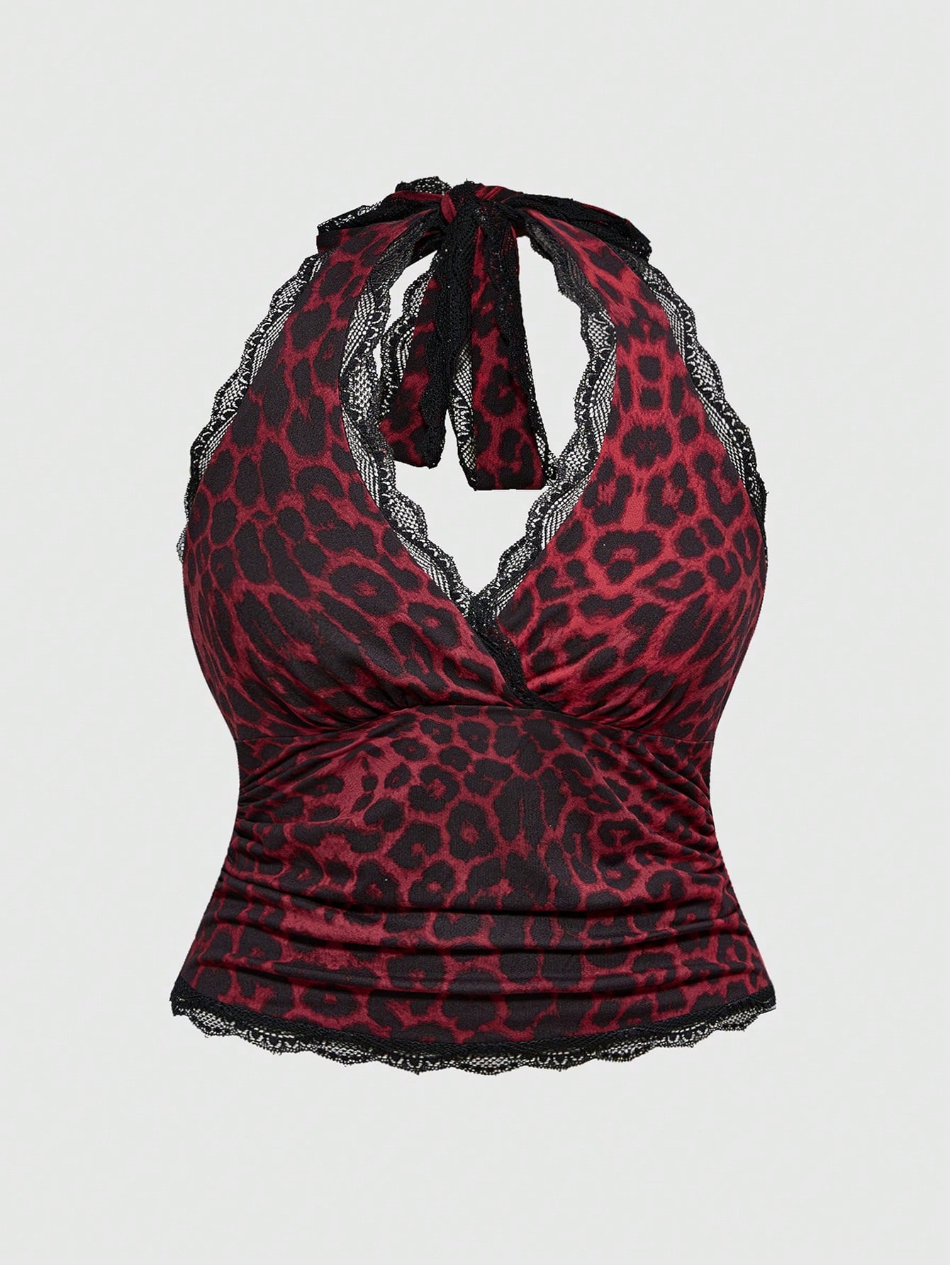 Grunge Punk Canotta con scollo all'americana e stampa leopardata in pizzo Y2K da donna taglie forti