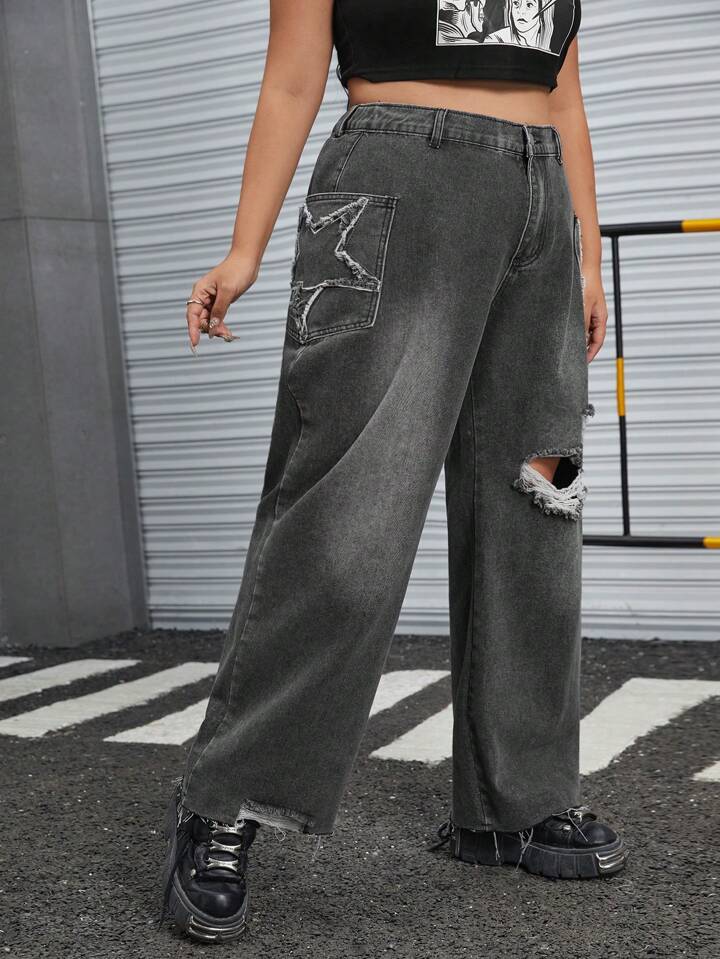 Grunge Punk Taglie Forti Jeans a gamba dritta con modello stelle con strappati