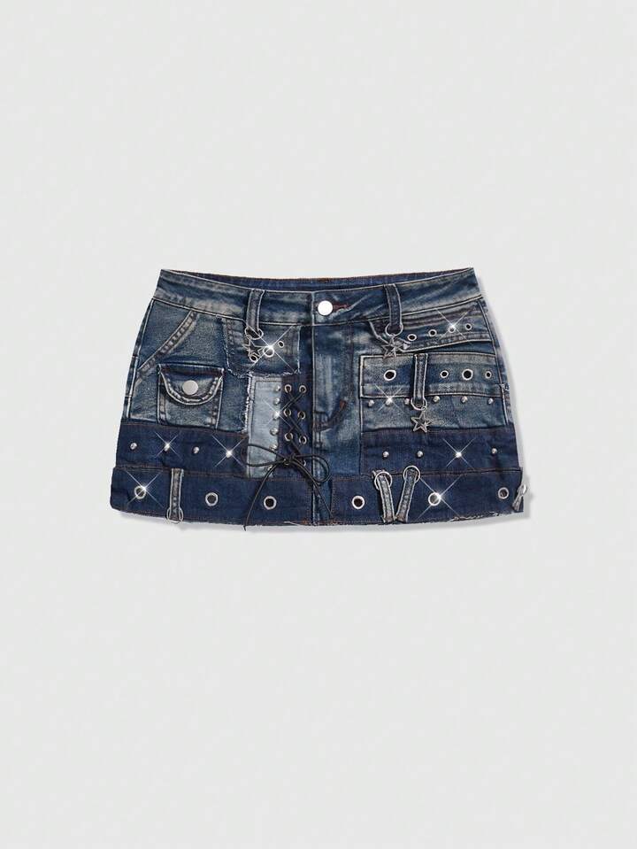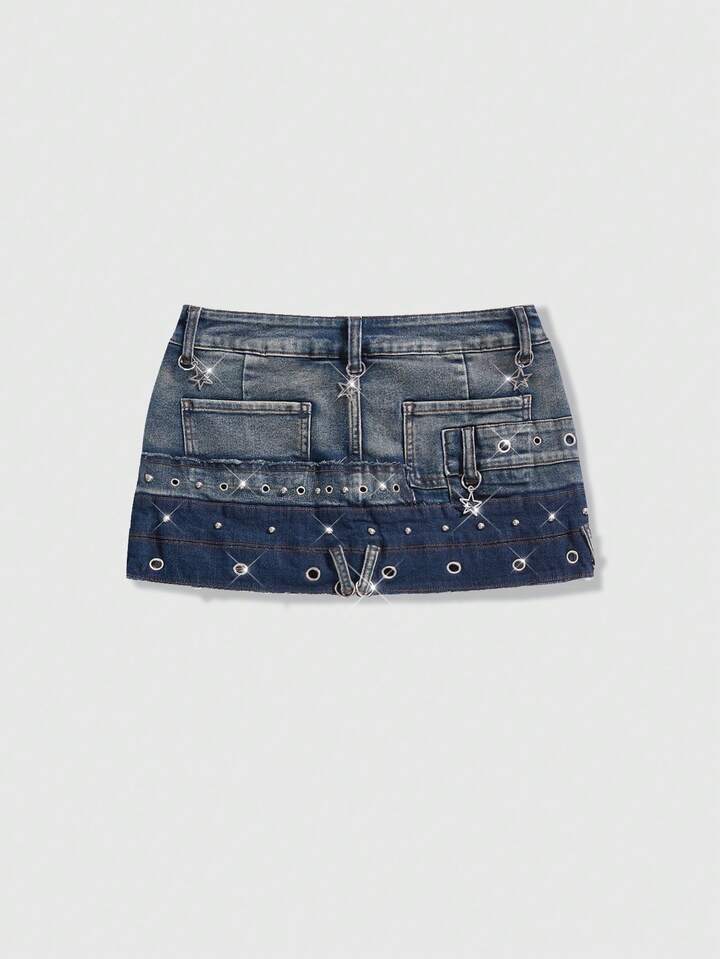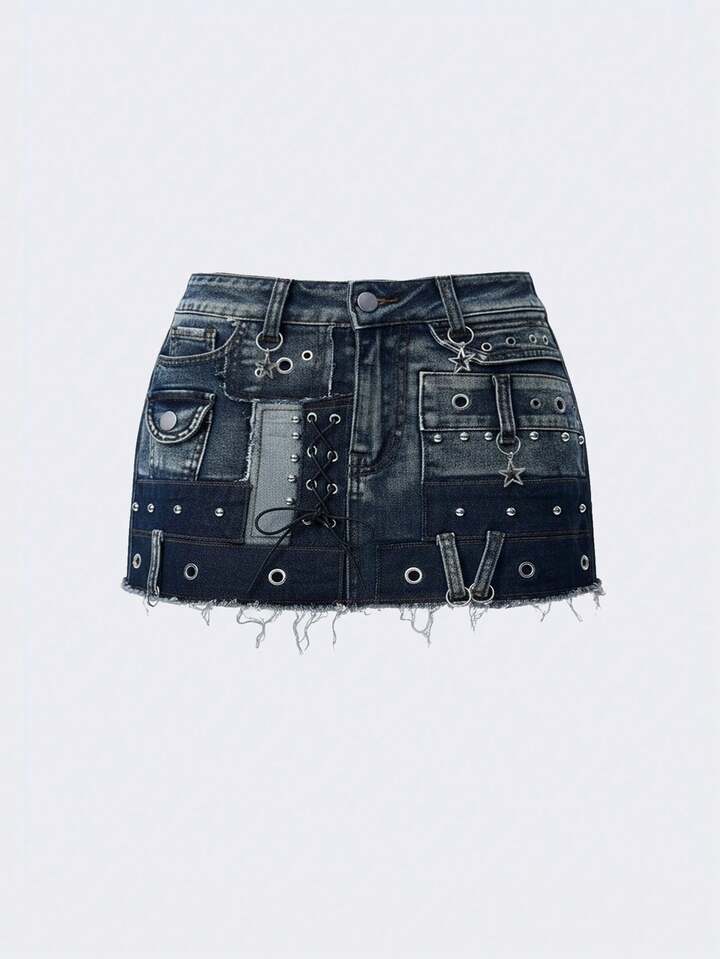 Grunge Punk Gonna di jeans mini a vita bassa con design di borchie in stile punk
