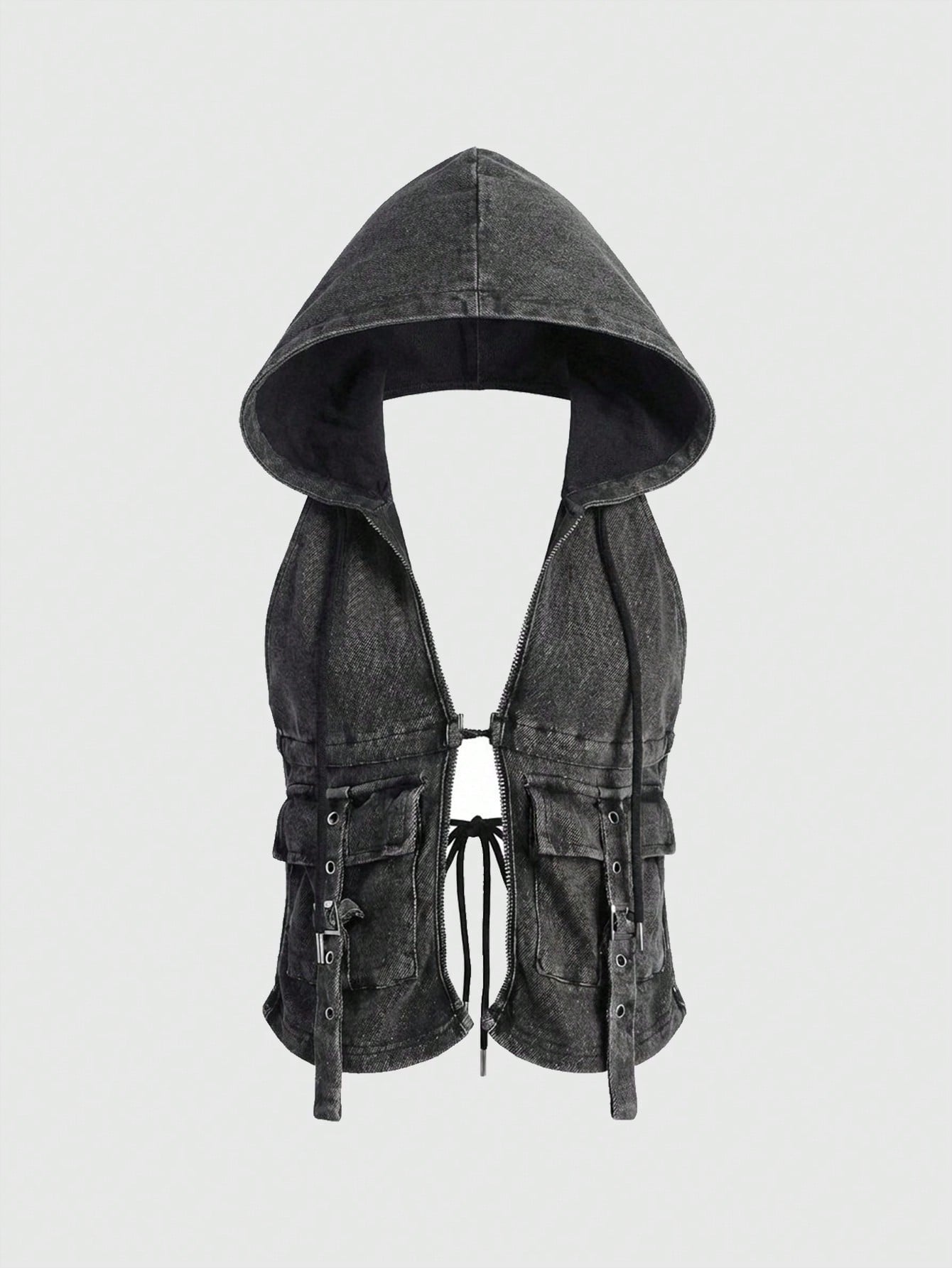 Grunge Punk Felpa con cappuccio da donna in stile punk con occhielli metallici 3D sulle tasche
