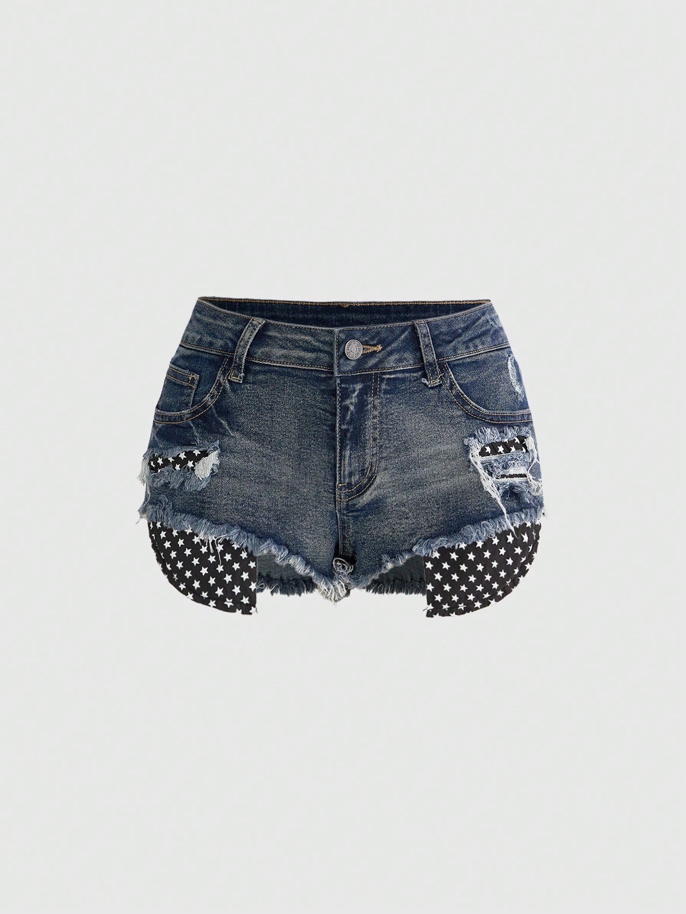 Grunge Punk Shorts di jeans mini con design a stelle strappato, vita scoperta, stile punk Y2K sexy