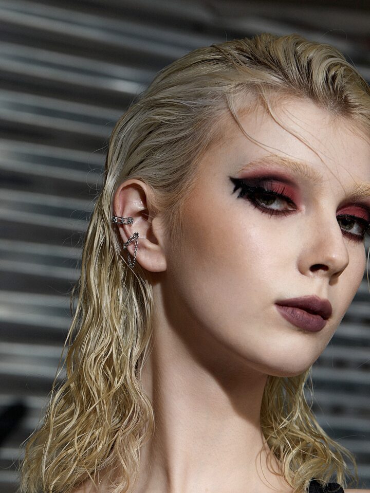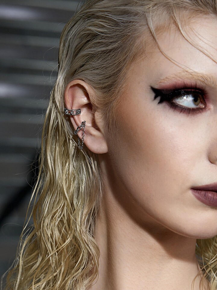 Grunge Punk Orecchini a clip con strass & con decorato a catena non abbinati