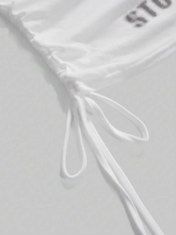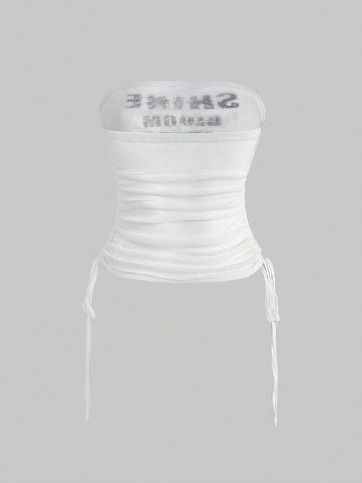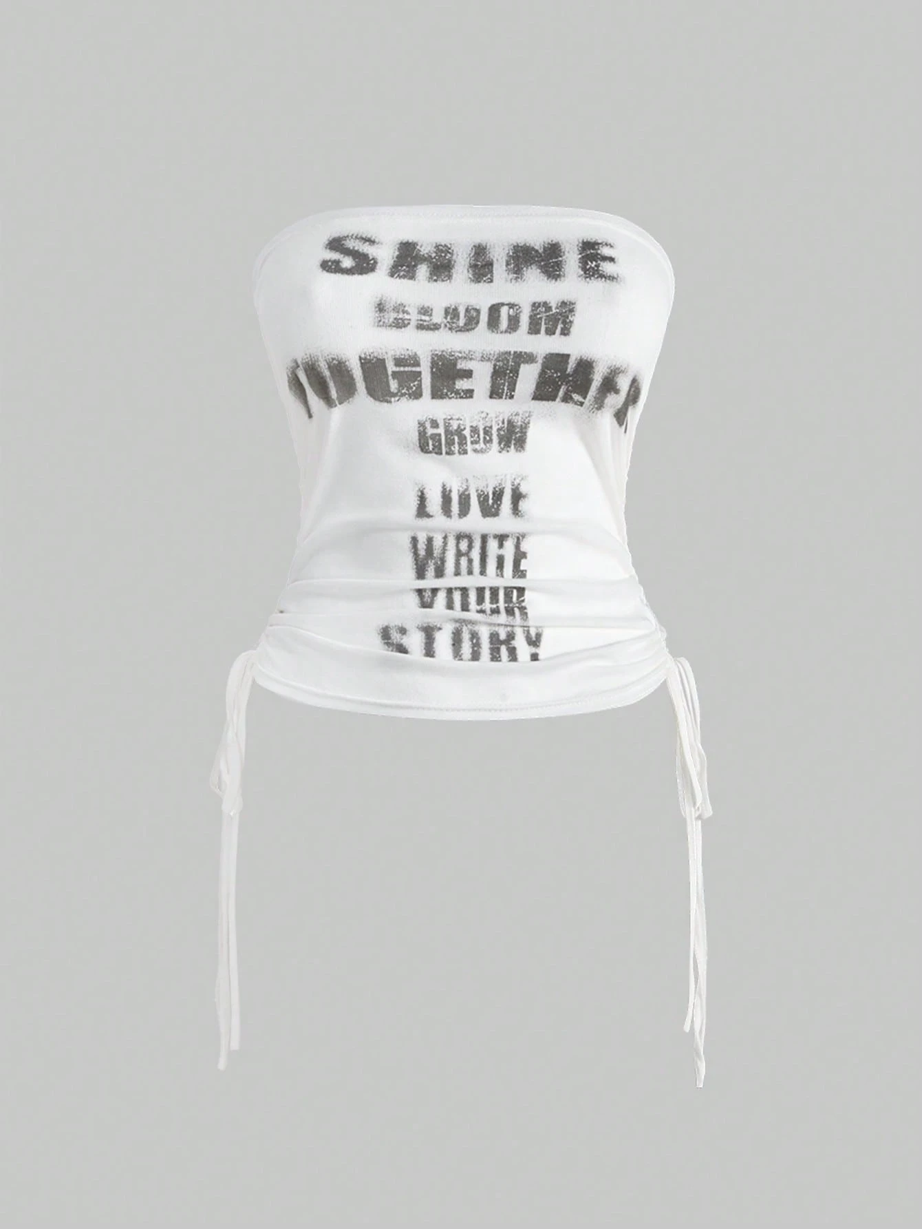 Grunge Punk Top corto sexy e trasparente con stampa romantica punk a croce e lettera, con lati arricciati, per donne