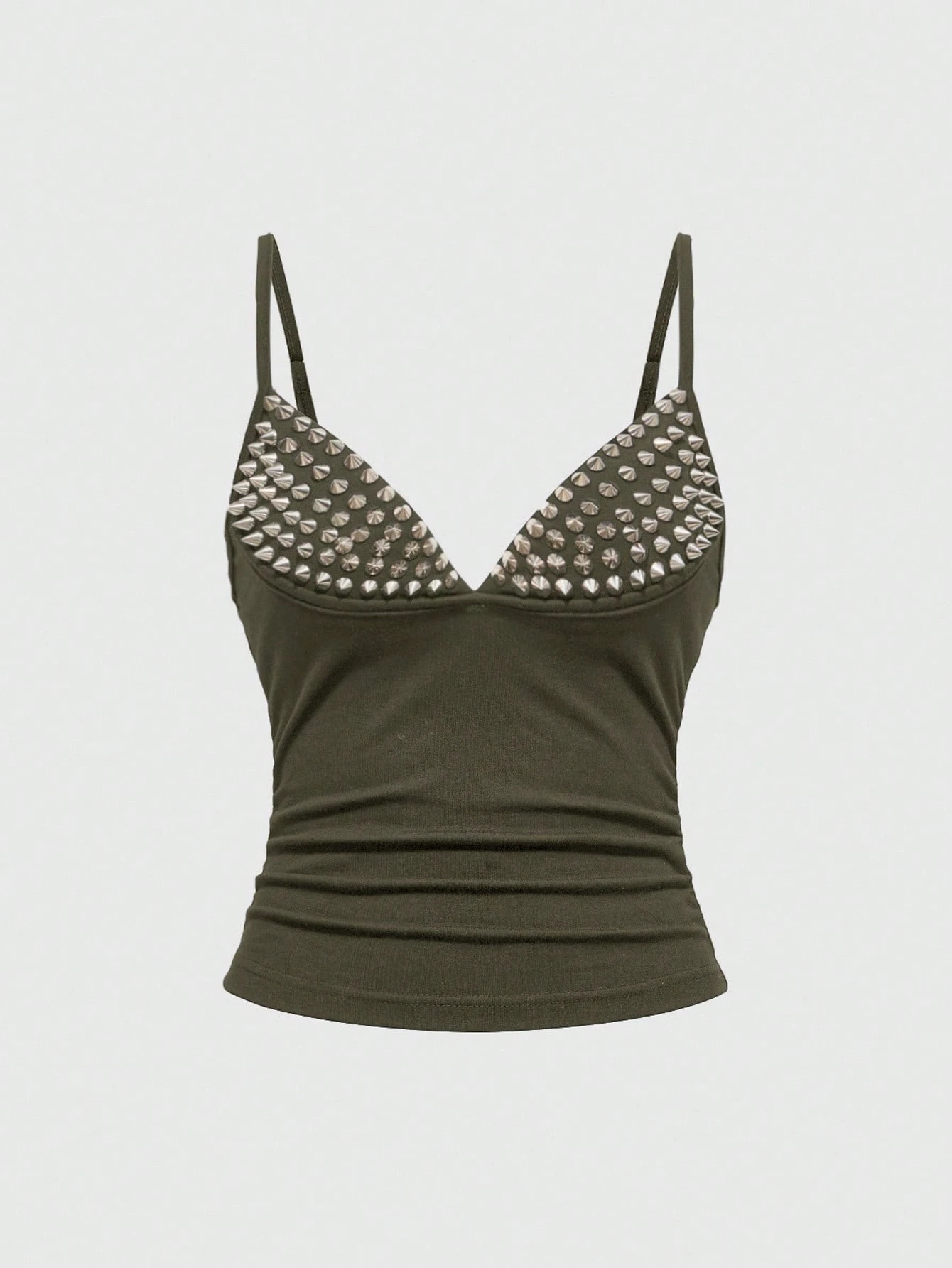 Grunge Punk Top sexy da donna in stile punk scuro con borchie e patchwork