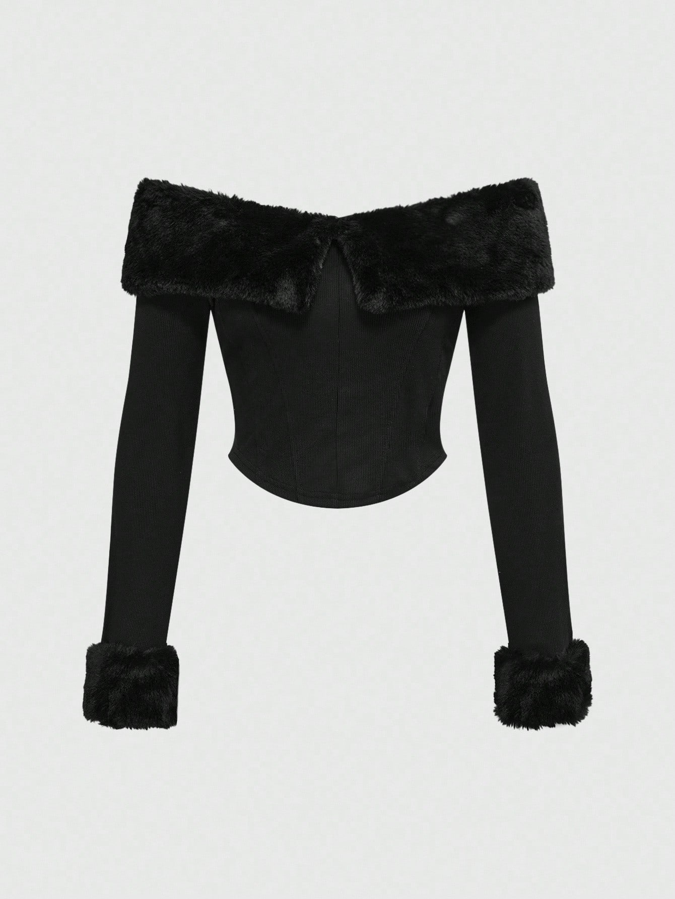 Grunge Punk Top aderente e morbido con spalle scoperte per donne