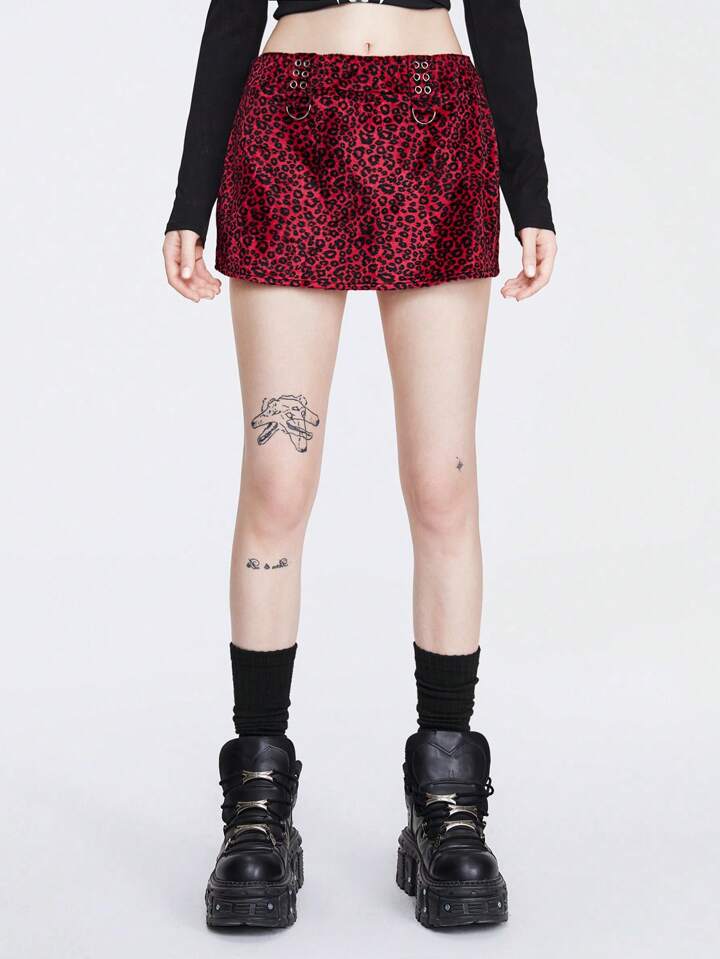 Grunge Punk Minigonna punk rock sexy da party stile Y2K in stampa leopardata con occhielli metallici, per donne e scuola