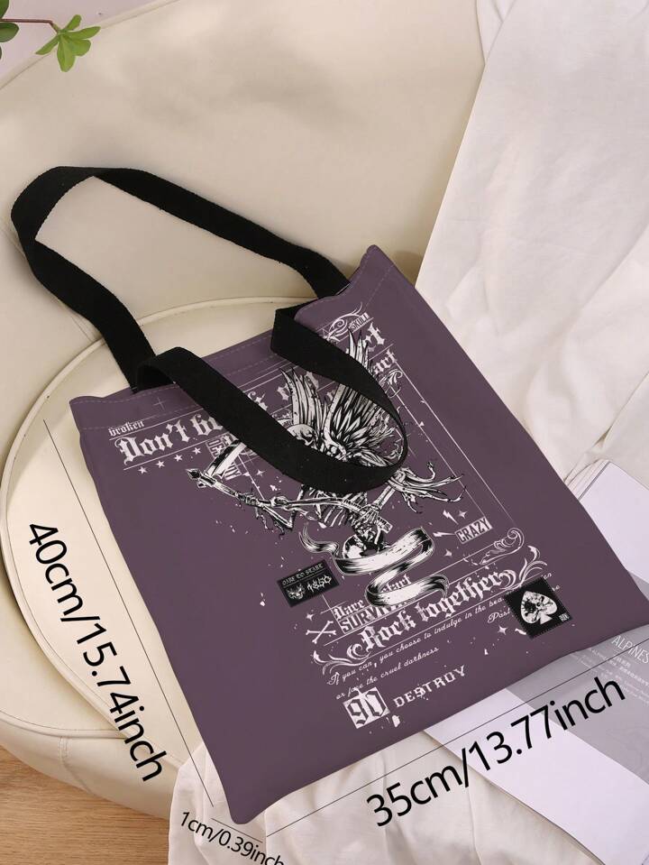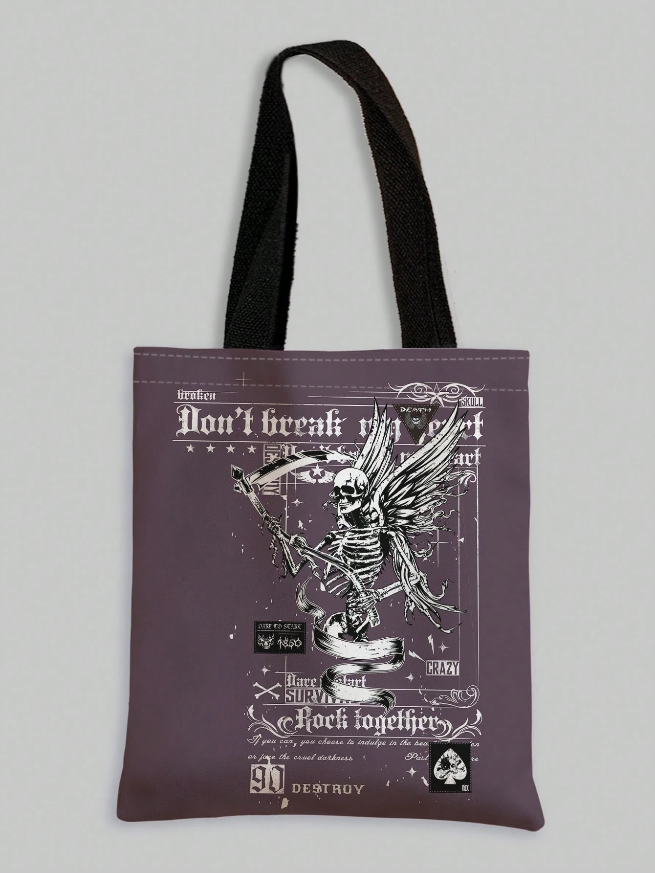 Grunge Punk Borsa shopping scheletro & con grafica slogan