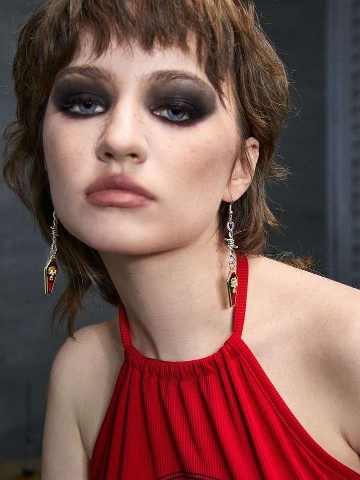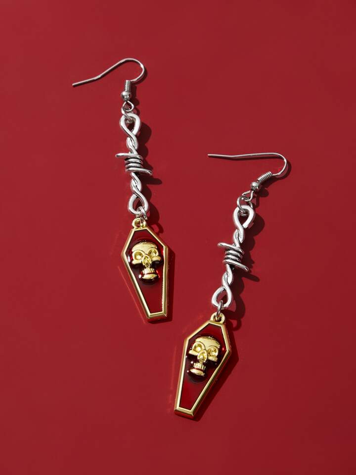 Grunge Punk Orecchini pendenti geometrici teschio dettaglio