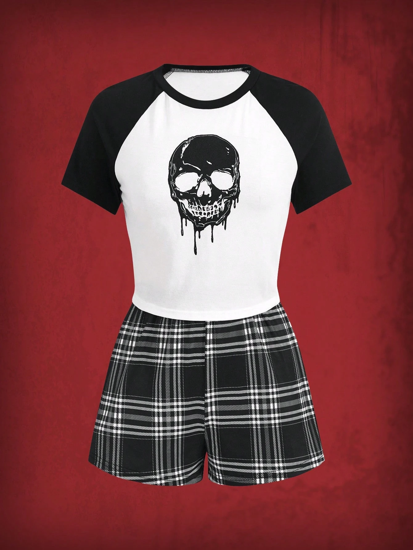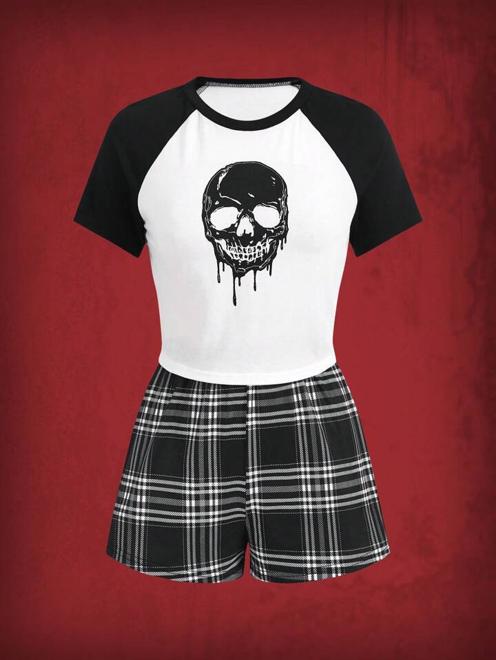Grunge Punk Set pigiama con grafica cranio a quadri