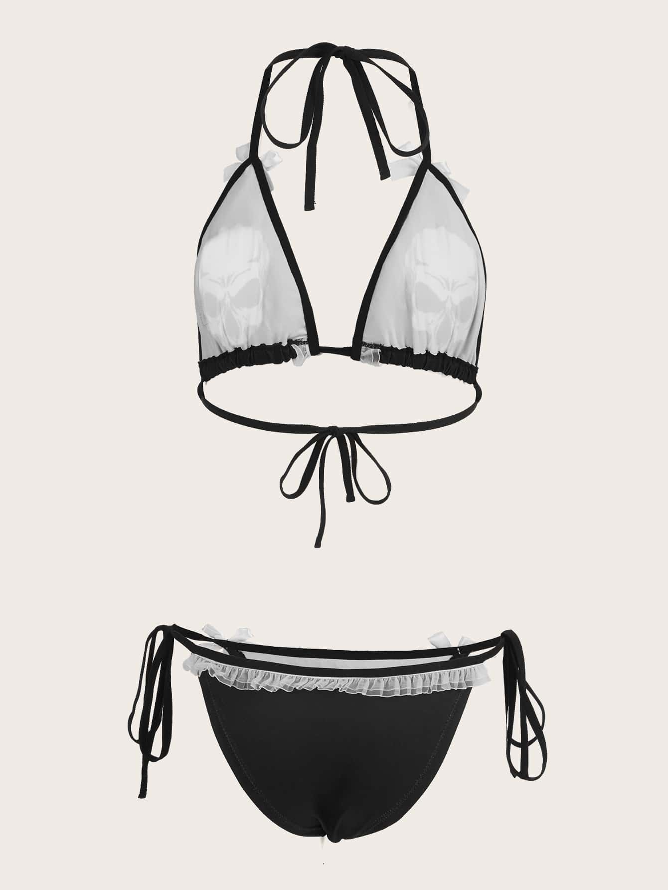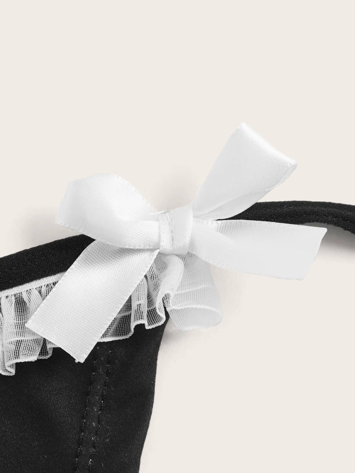 Grunge Punk Set di reggiseni e mutandine da donna Fiocco Contrasto Mesh Nodo Stampa