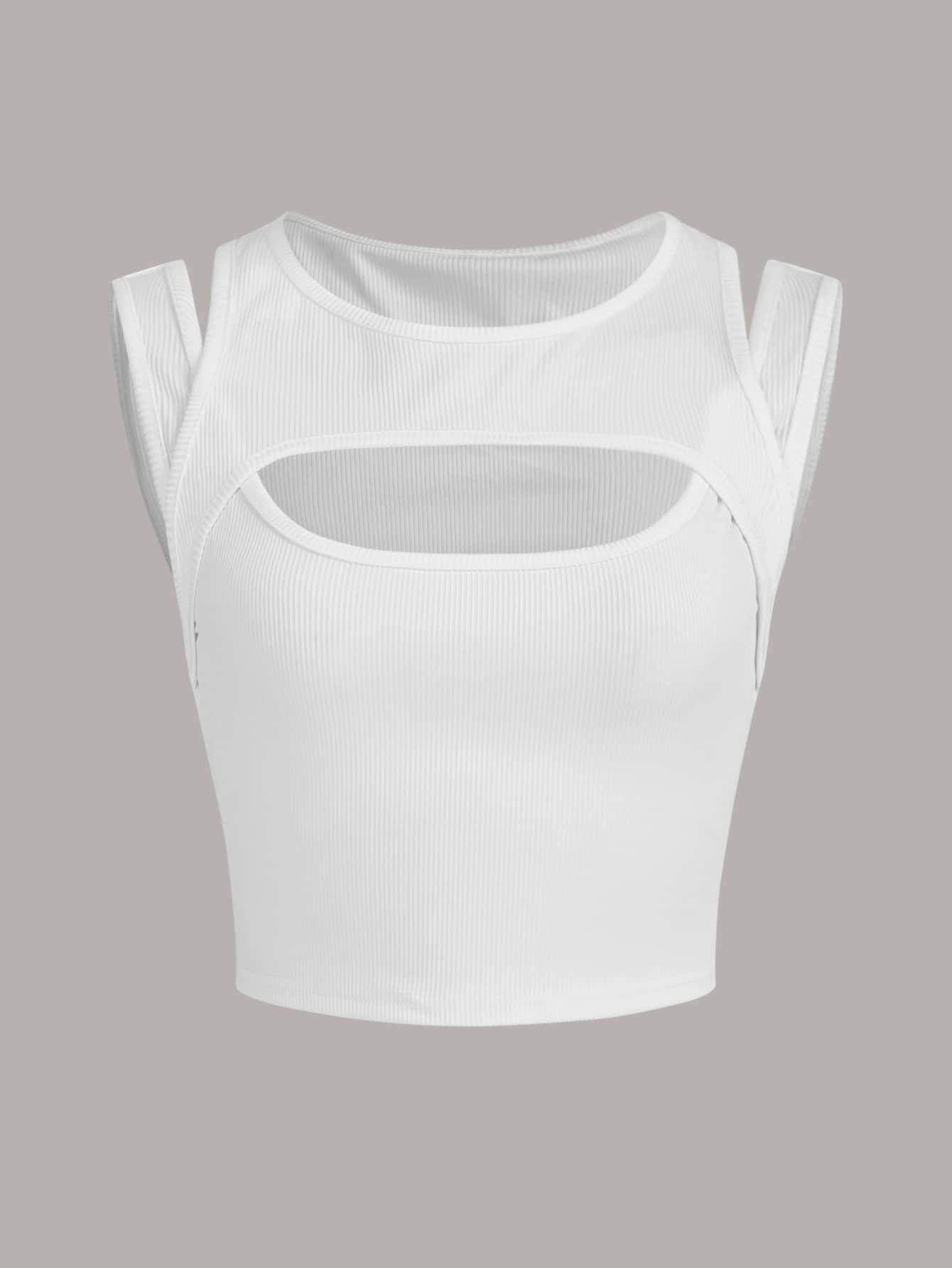 Grunge Punk Canotta monocolore 2 in 1 a costine scavato