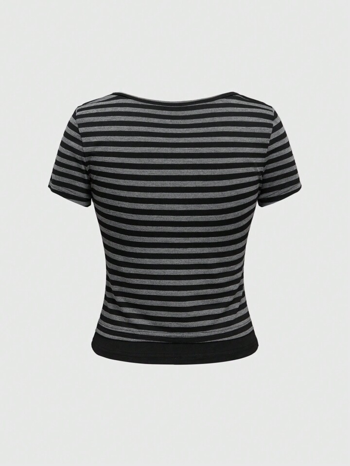 Grunge Punk Maglietta a maniche corte con scollo aperto, a patchwork, colorblock e righe, adatta per concerti, festival e rave di primavera