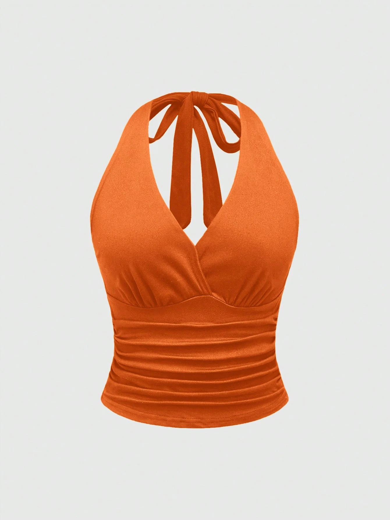 Grunge Punk Canotta donna stile Y2K, colore unito, collo alto, plissettata, aderente