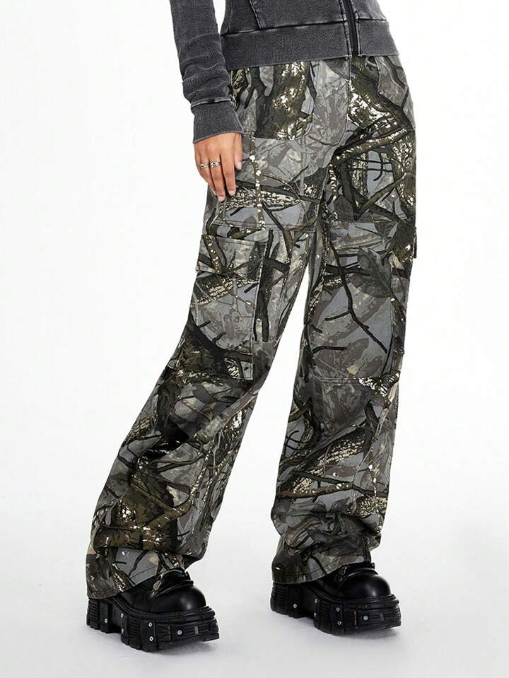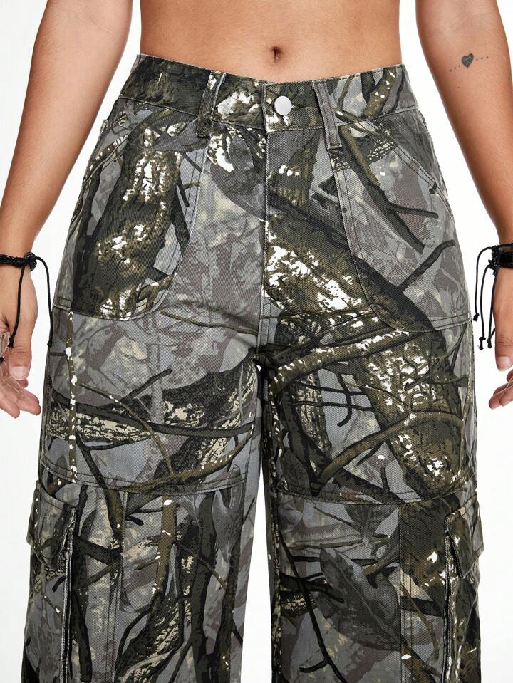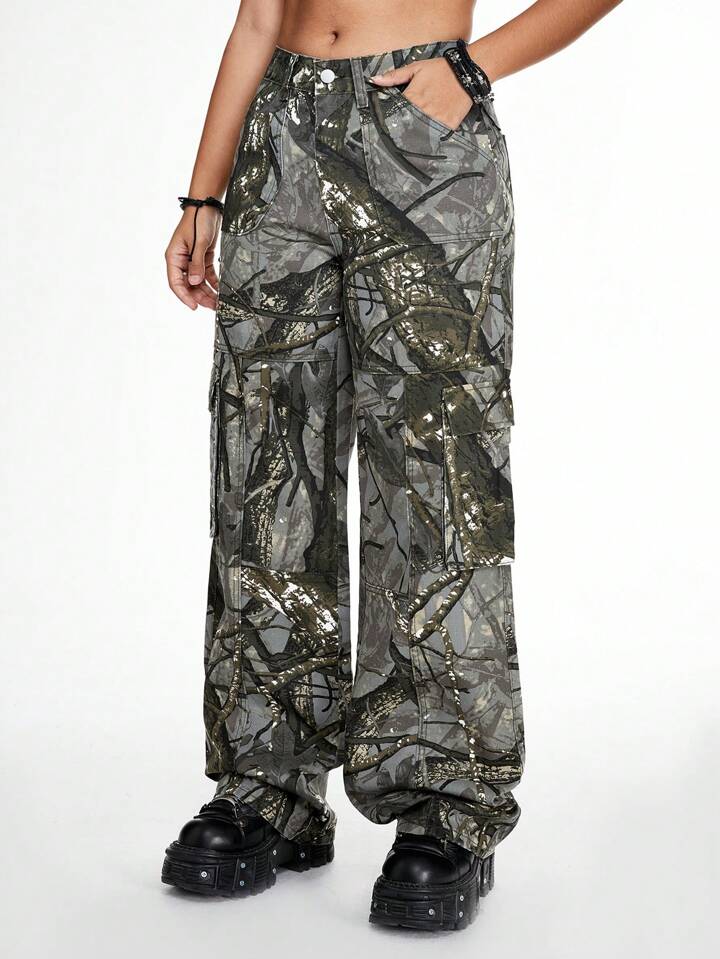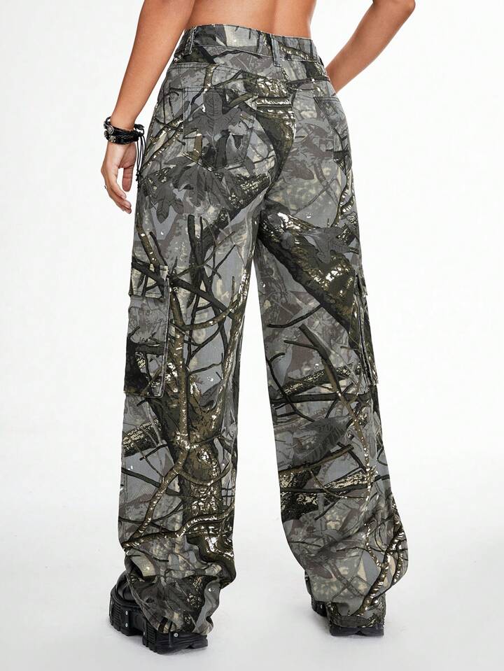 Grunge Punk Jeans larghi a gamba dritta stile urban casual con stampa floreale in tessuto per donne