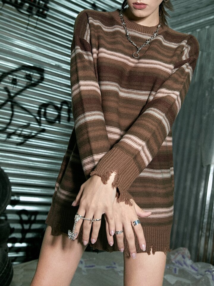 Grunge Punk Maglione invecchiato righe
