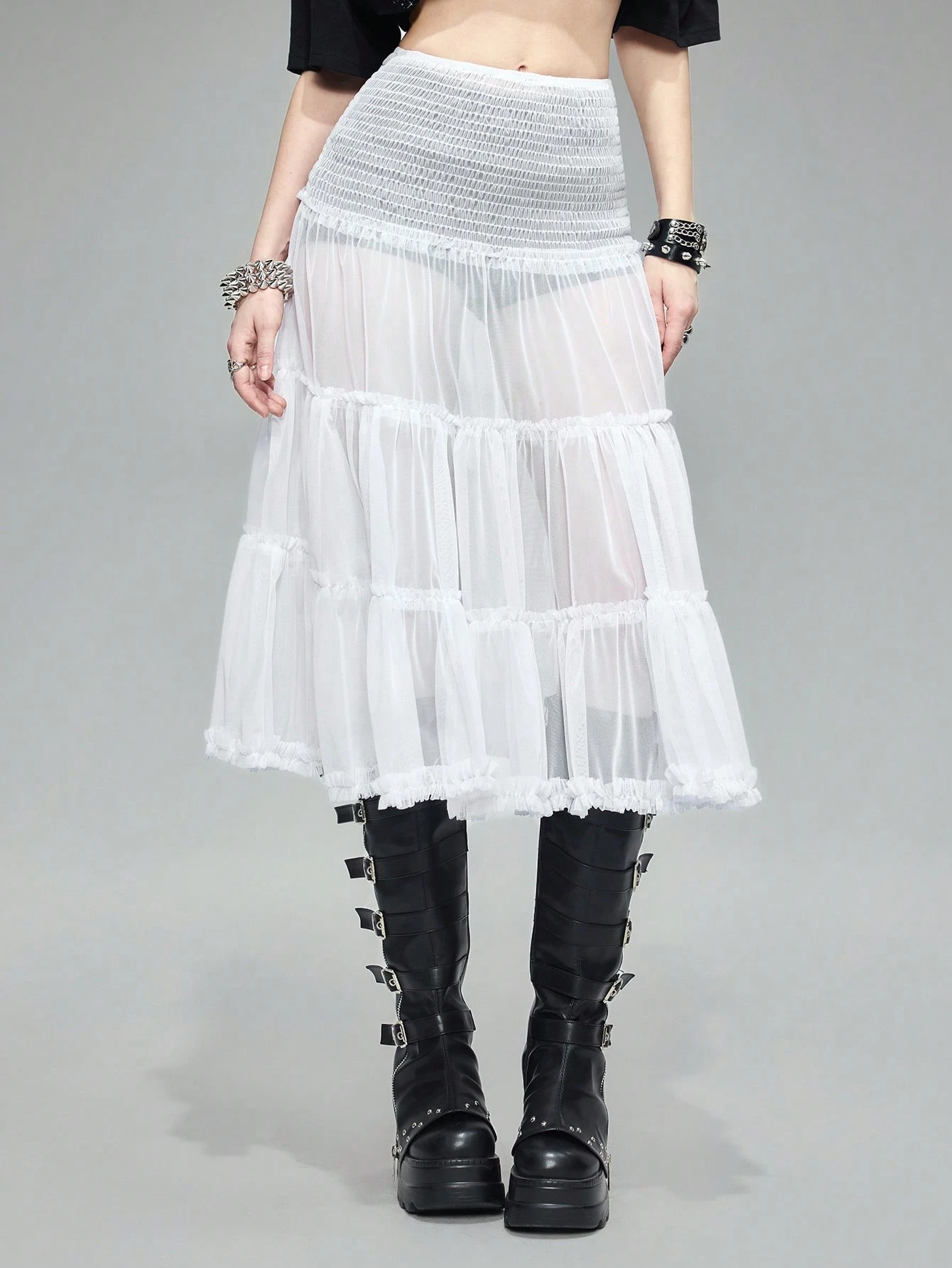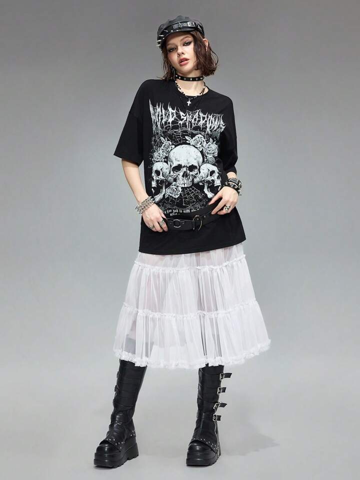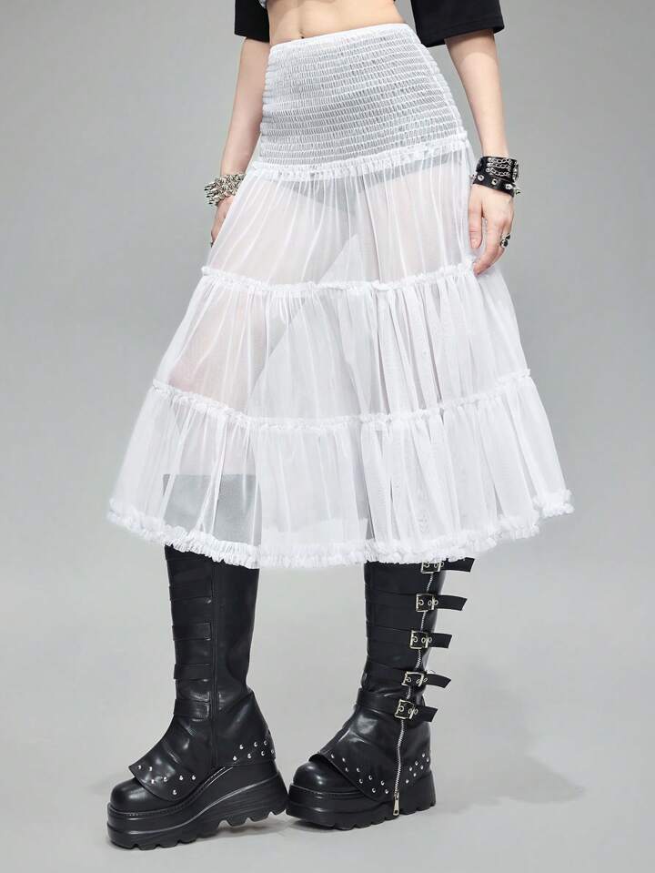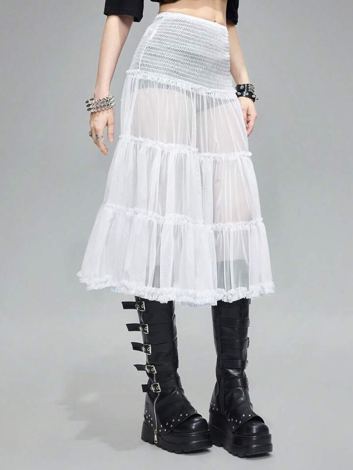 Grunge Punk Gonna a tutu estiva stile strada in rete color beige a forma di torta con fodera