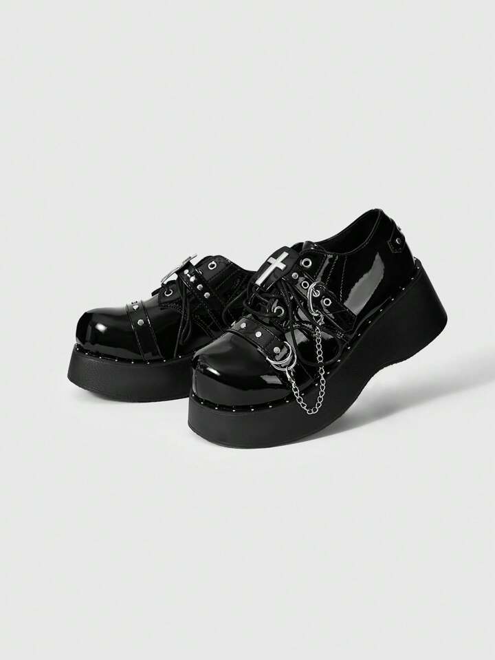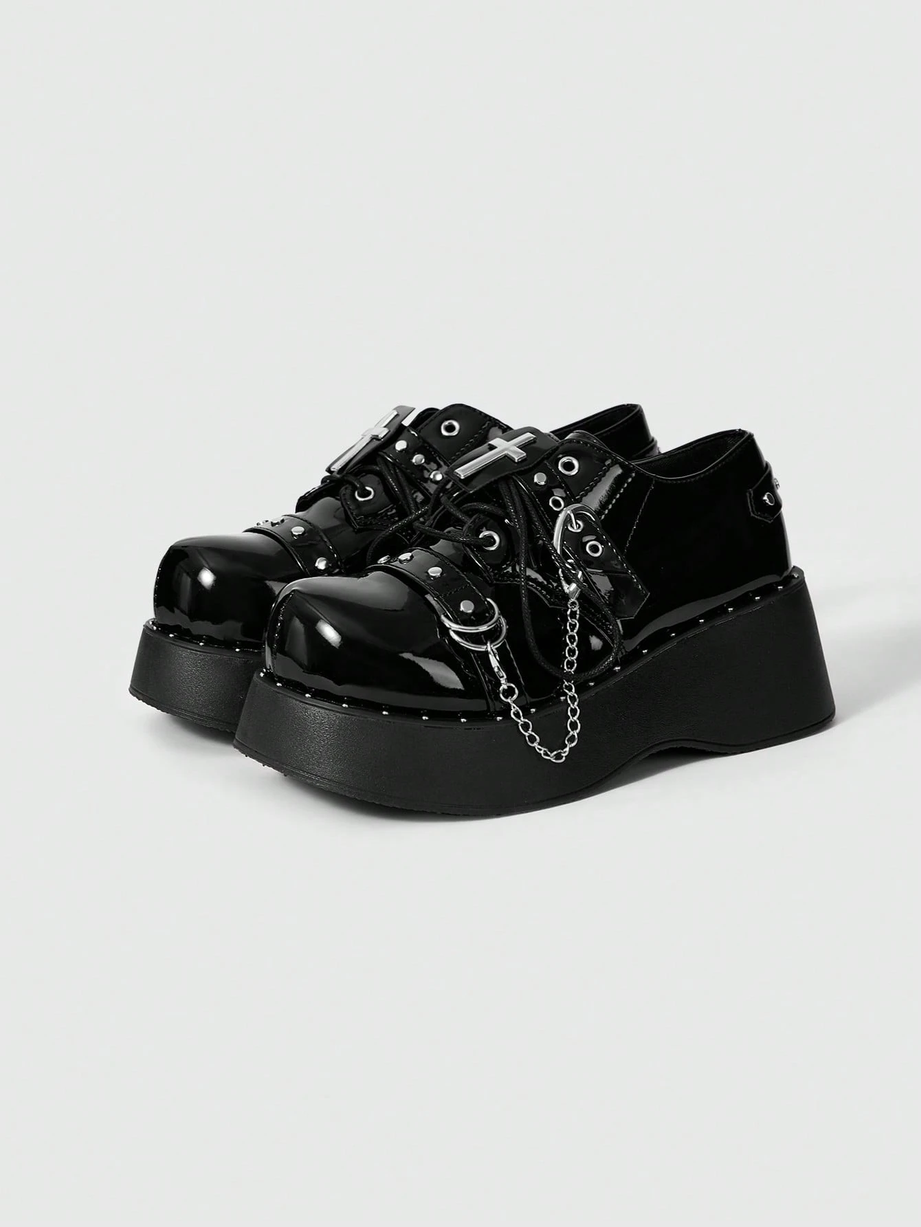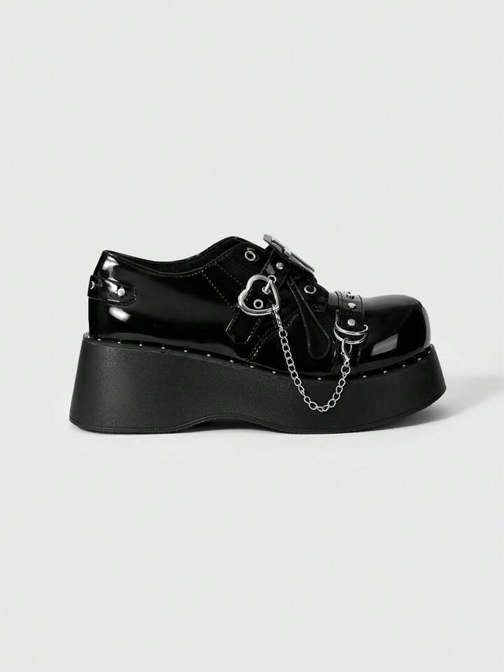 Grunge Punk Scarpe con suola platform stile punk dolce, cultura sottacquea Y2K, suola spessa, punta tonda, tacco alto, stile britannico "Hot Girl" giapponese JK in finta pelle