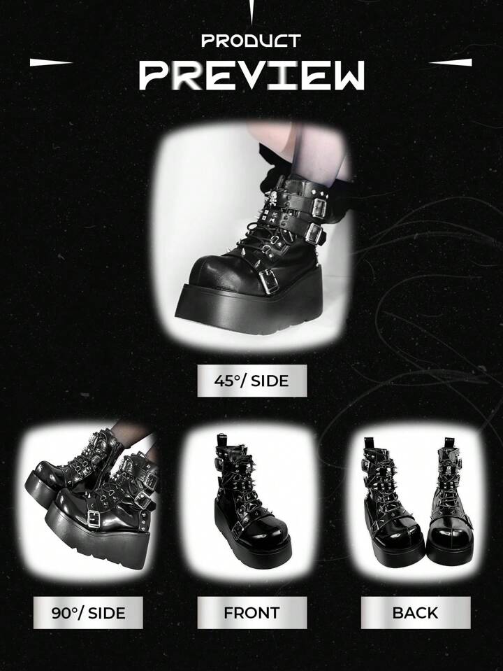 Grunge Punk Stivali con plateau e tacco alto spesso nero, stile uniforme JK, per la primavera/autunno 2024, adatti per Natale, Capodanno e San Valentino
