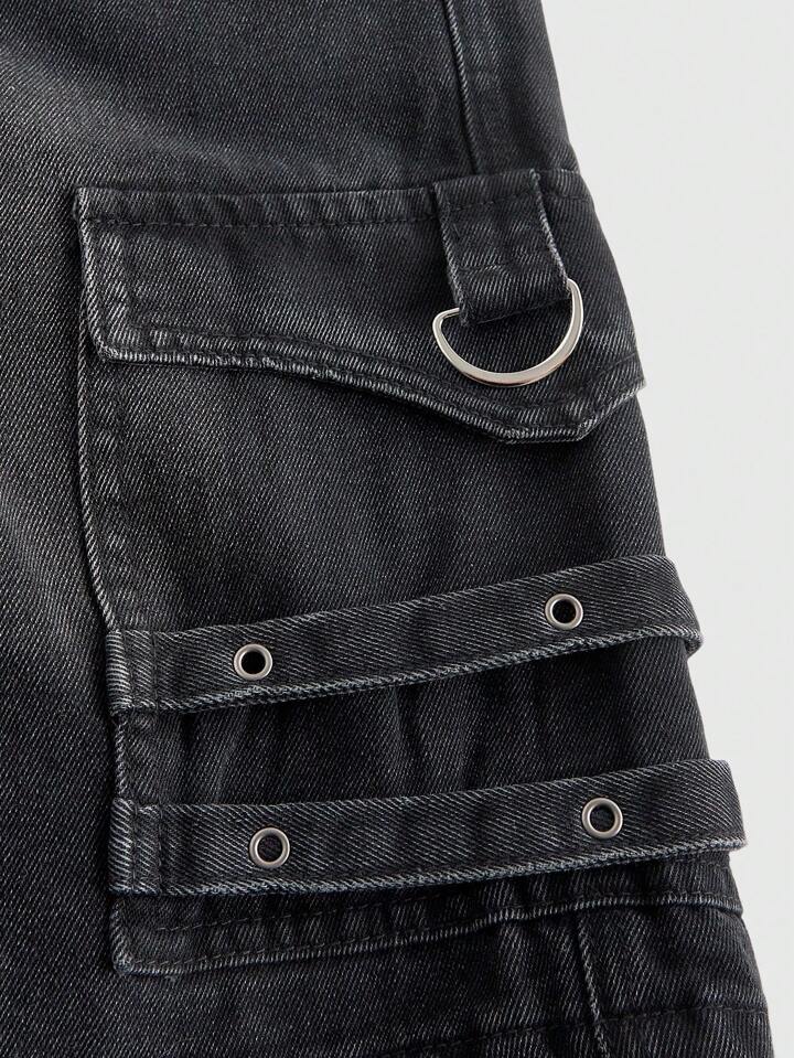 Grunge Punk Bermuda in denim Distressed unisex con bottoni laterali, tasche e decorazioni con borchie in stile punk, per donna
