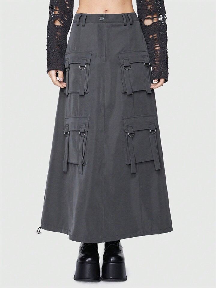 Grunge Punk Gonna Utility Con Tasche E Orlo Con Coulisse
