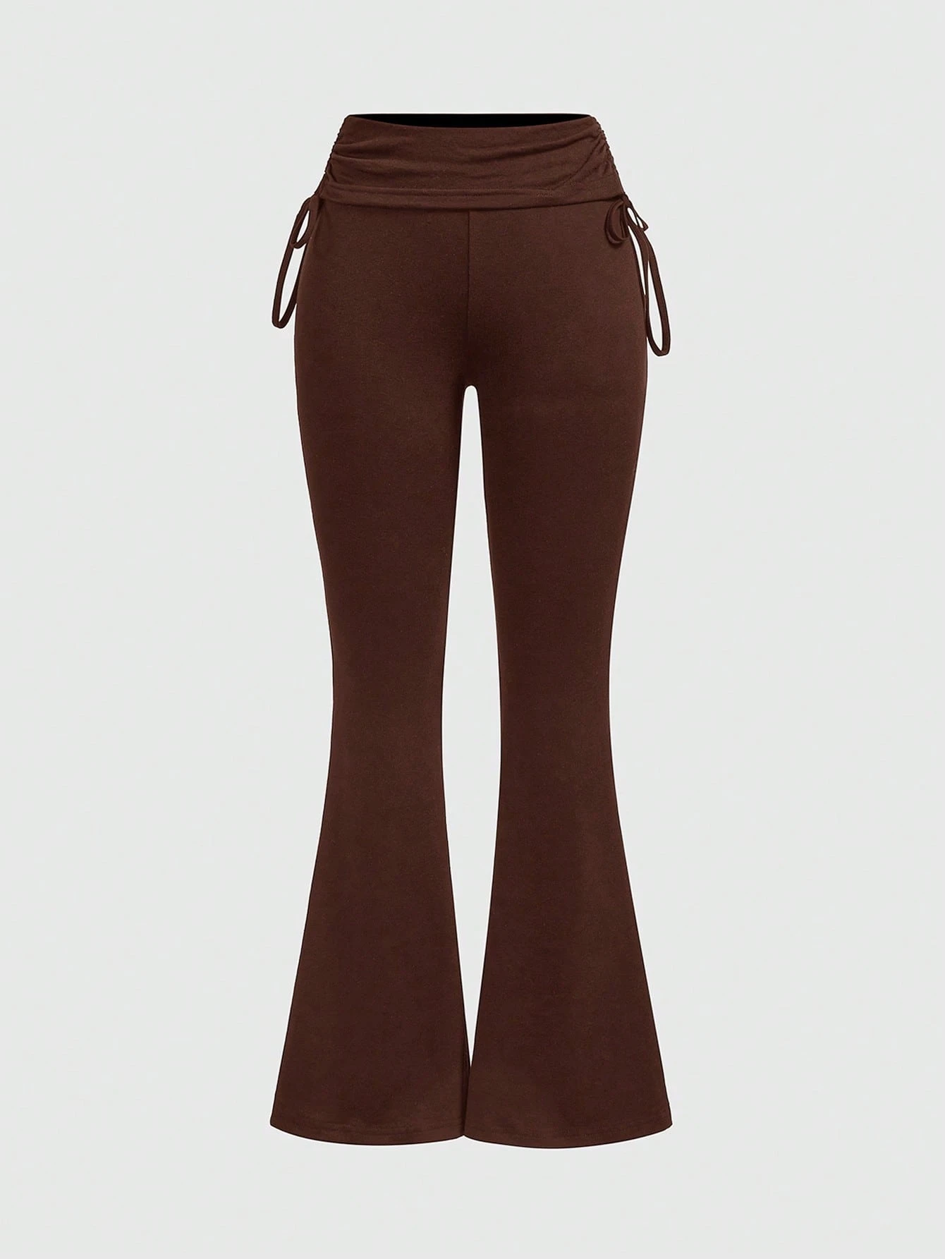 Grunge Punk Pantaloni neri versatili a zampa con coulisse per donna