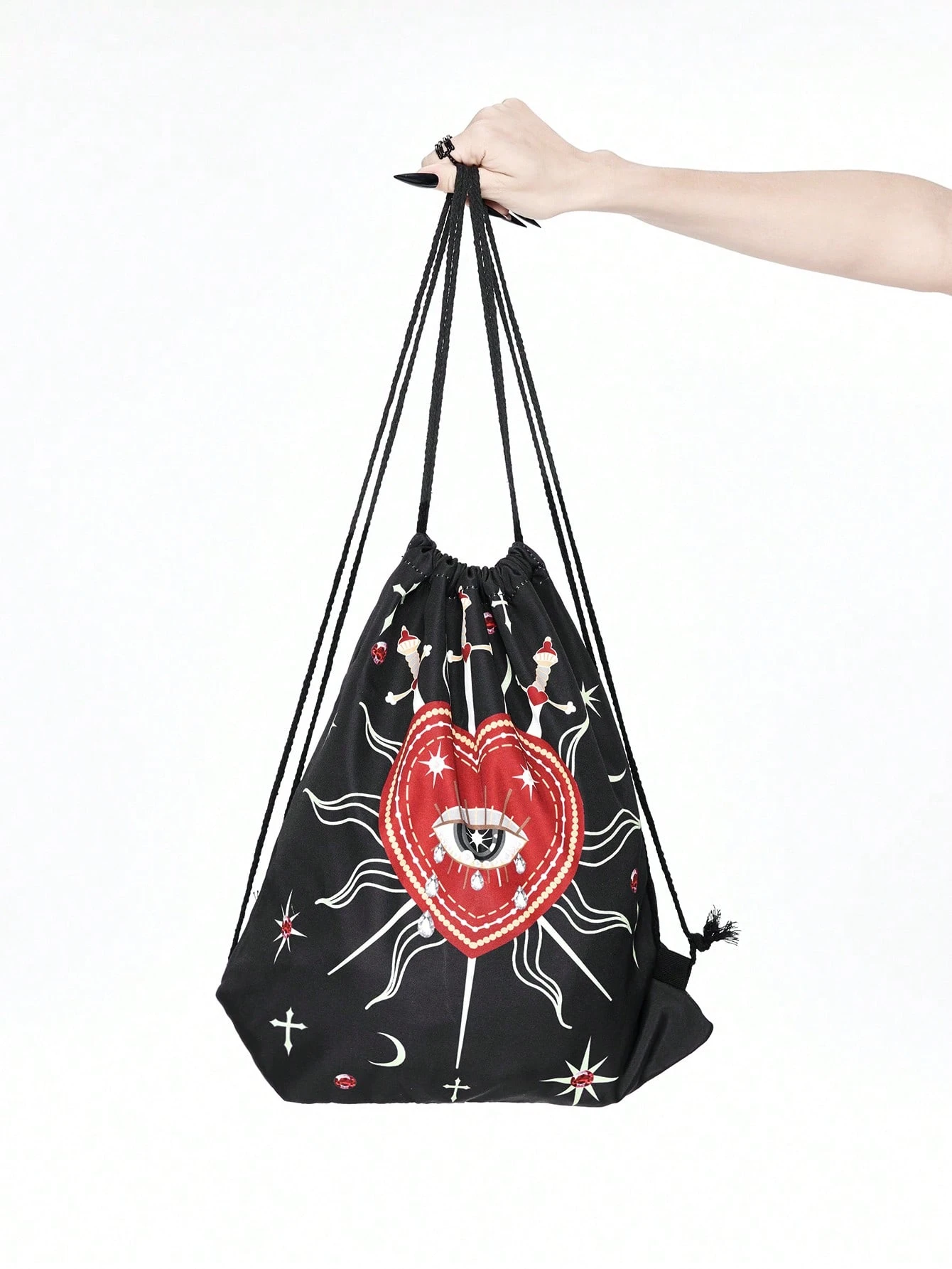 Grunge Punk Zaino con coulisse di grande capacità con stampa vintage mimetica, pentagramma e numeri, zainetto casual alla moda unisex, borsa da palestra, adatto per scuola, vacanza, festa, shopping