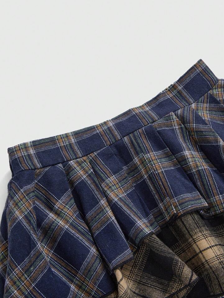 Grunge Punk Gonna mini asimmetrica con orlo a strati, in patchwork stile vintage grunge a quadri