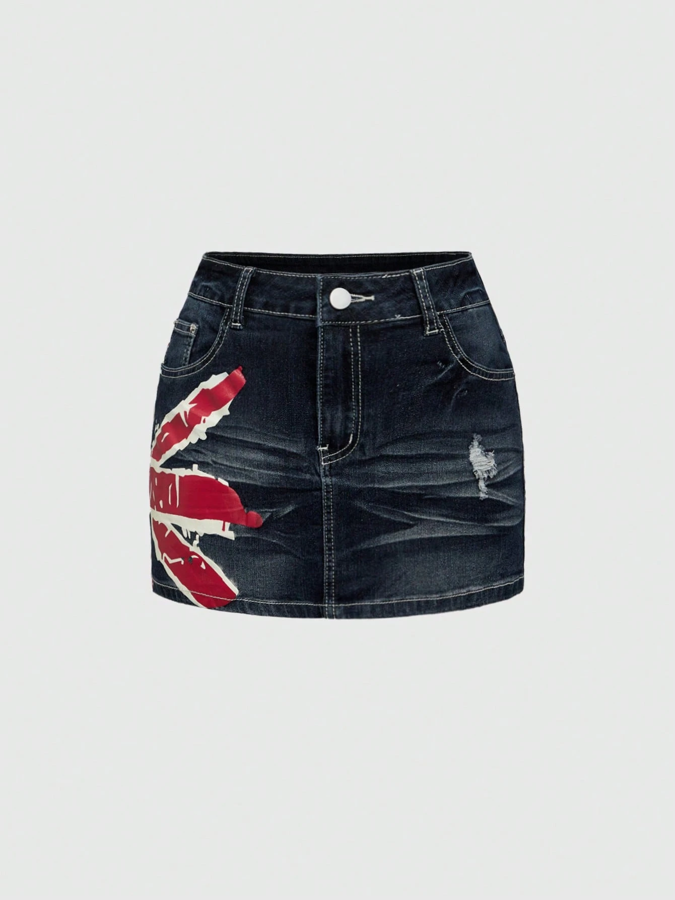 Grunge Punk Gonna di jeans mini vintage punk con stampa bandiera americana Y2K, a vita bassa e sexy, adatta per festival musicali estivi e vacanze