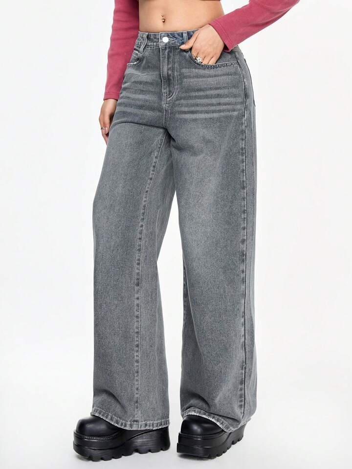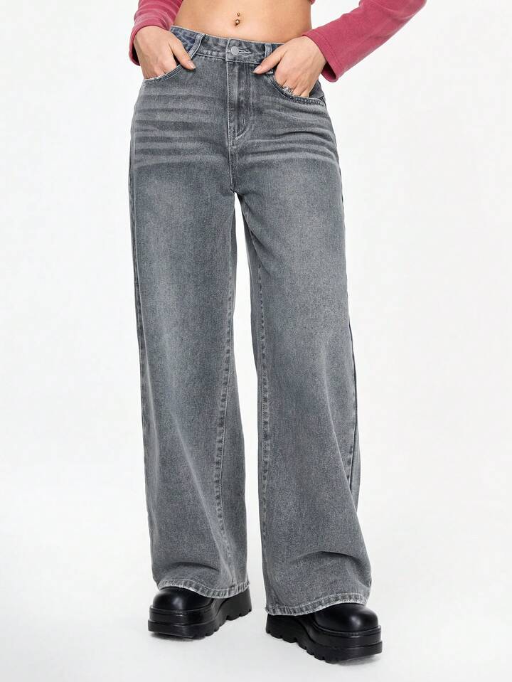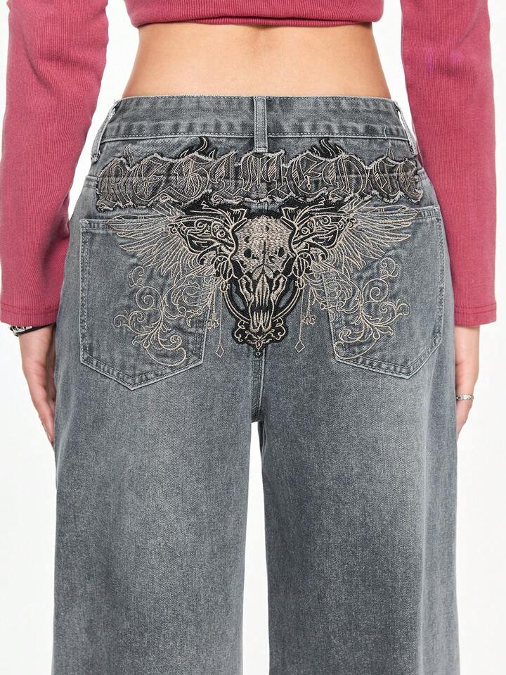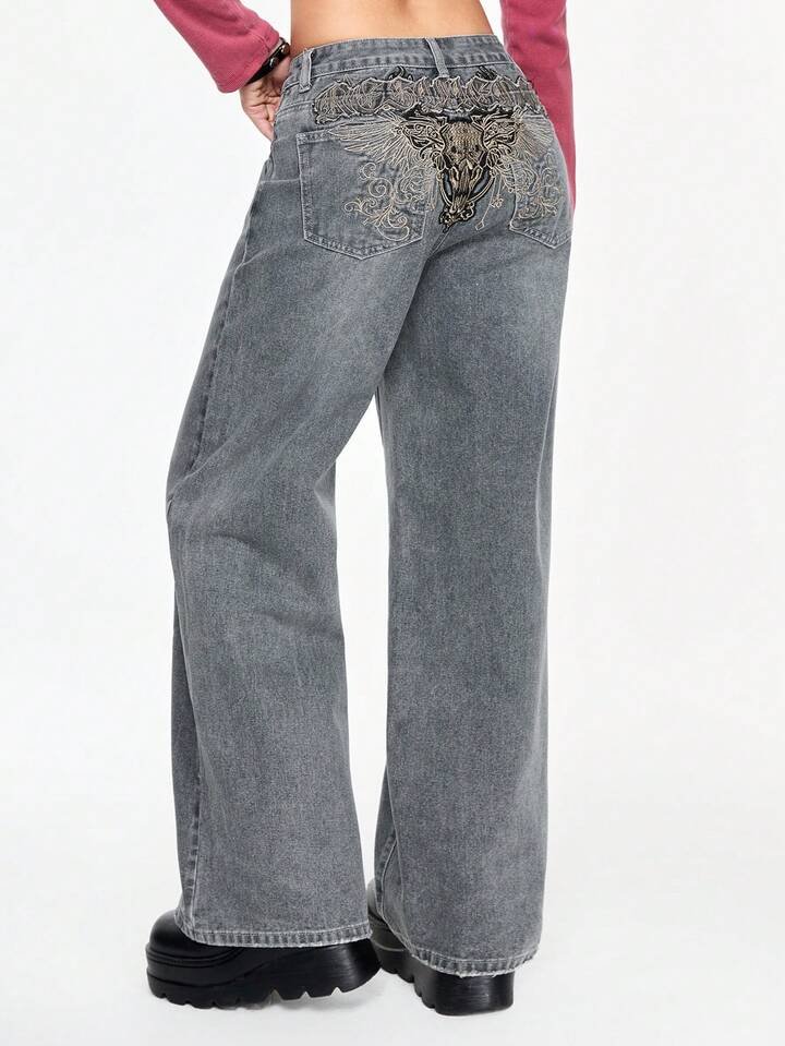 Grunge Punk Jeans ampi e larghi da donna, stile punk grunge, con ricamo a teschio e ali