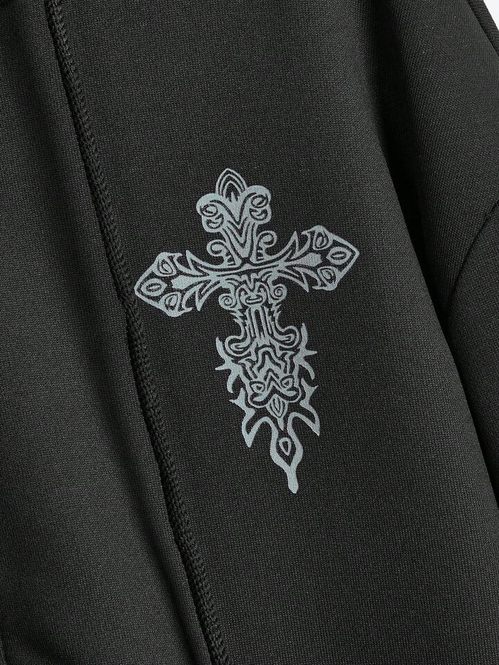 Grunge Punk Felpa con cappuccio con stampa ali spalle cadenti con coulisse